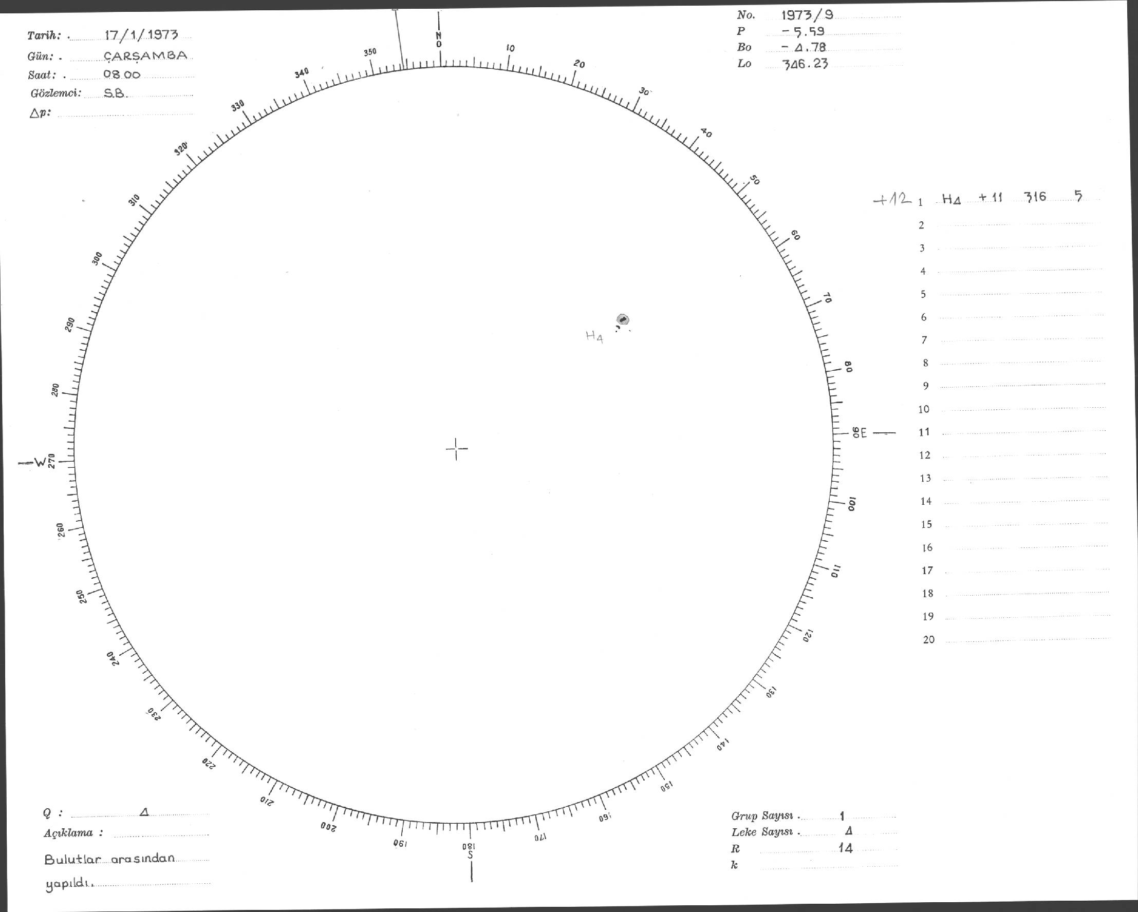 Güneş Lekesi Çizimi - 17.01.1973