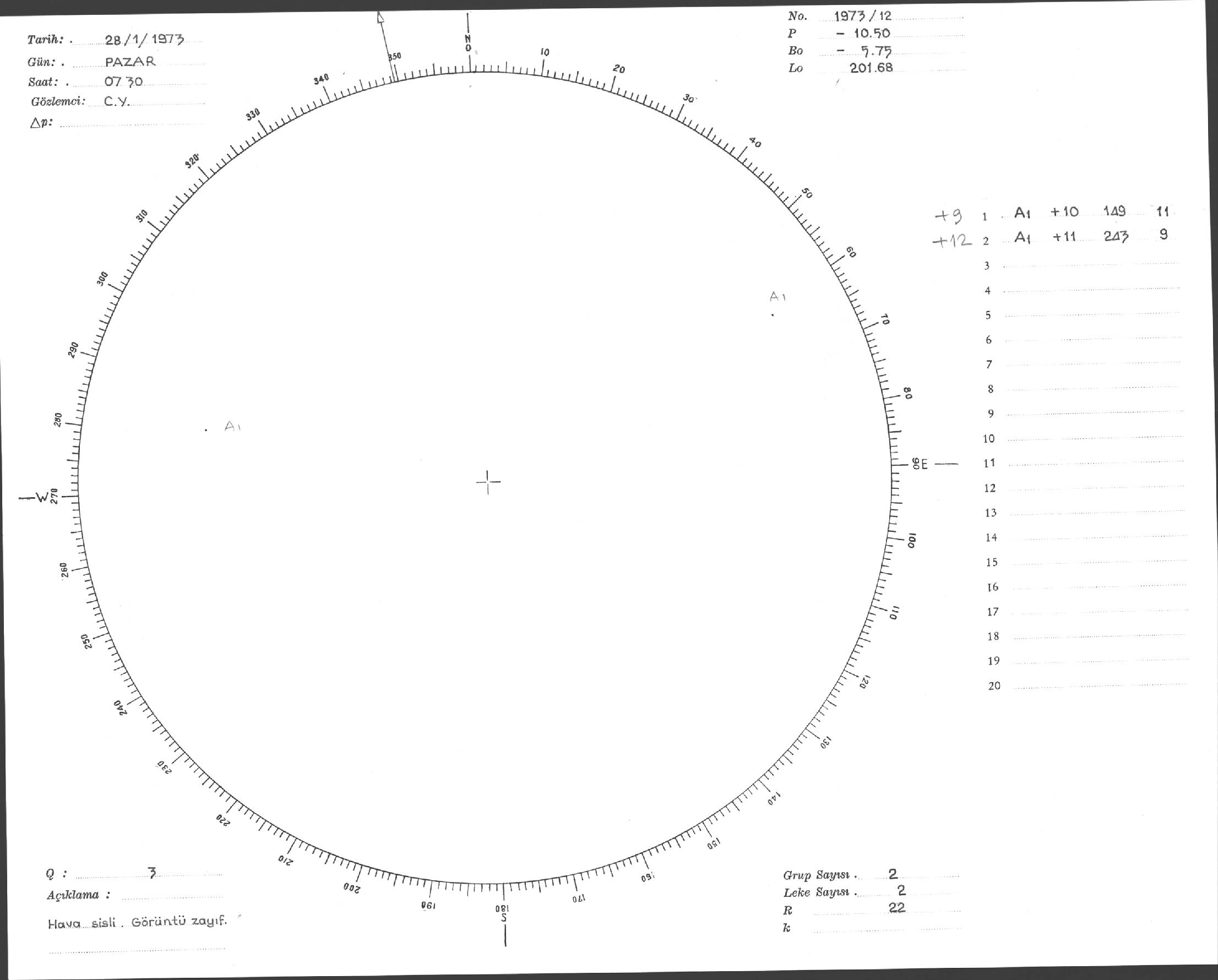 Güneş Lekesi Çizimi - 28.01.1973