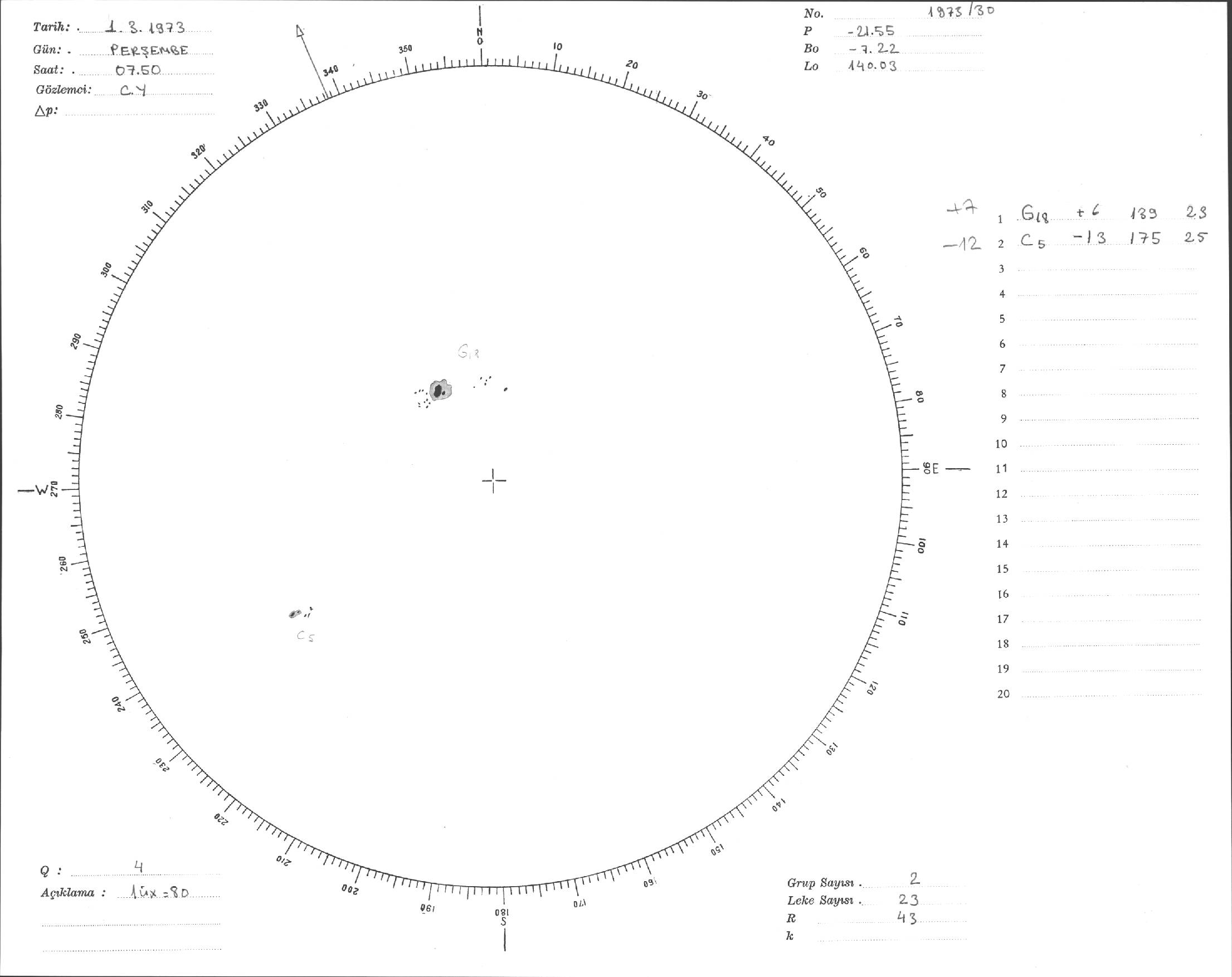 Güneş Lekesi Çizimi - 01.03.1973