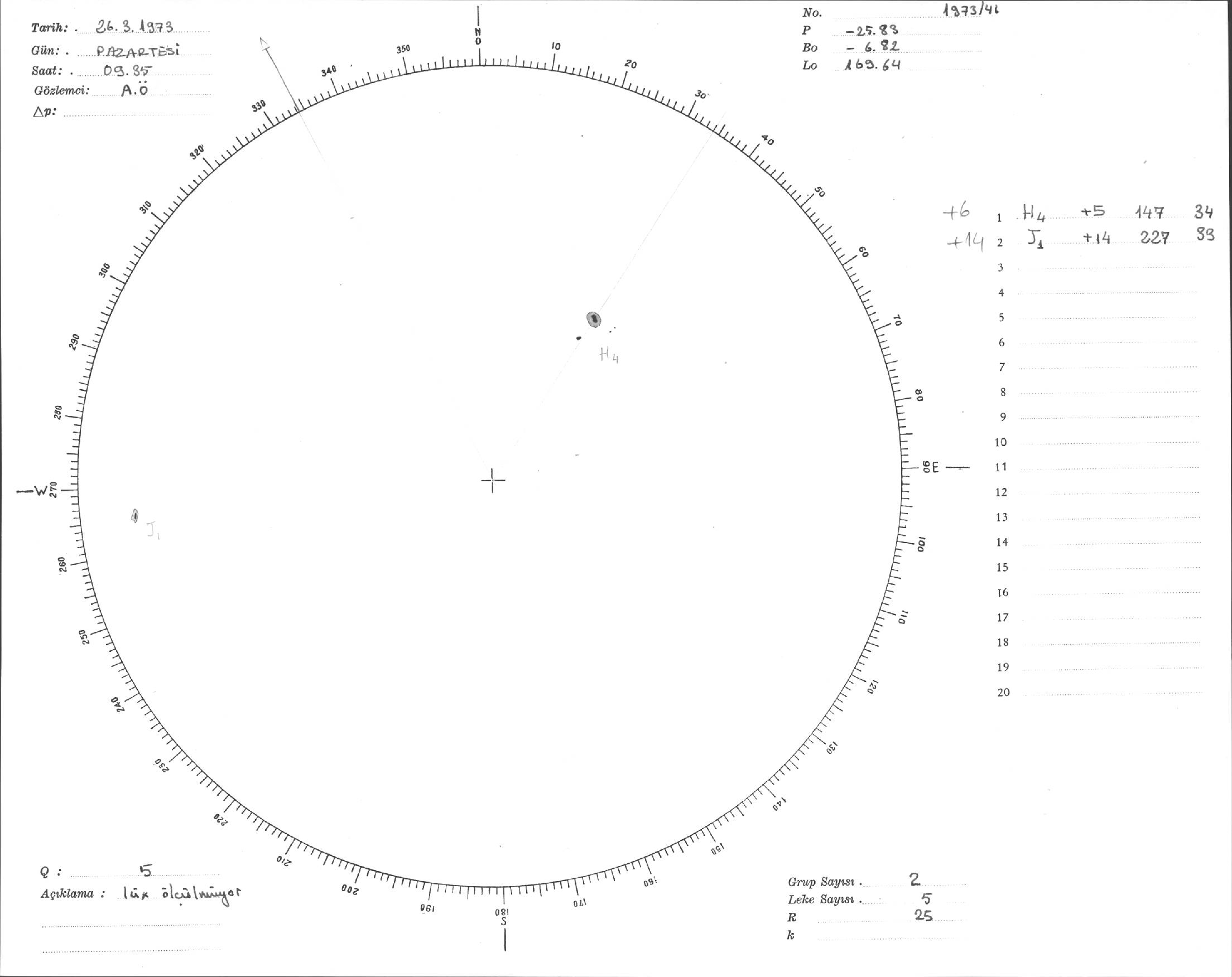 Güneş Lekesi Çizimi - 26.03.1973
