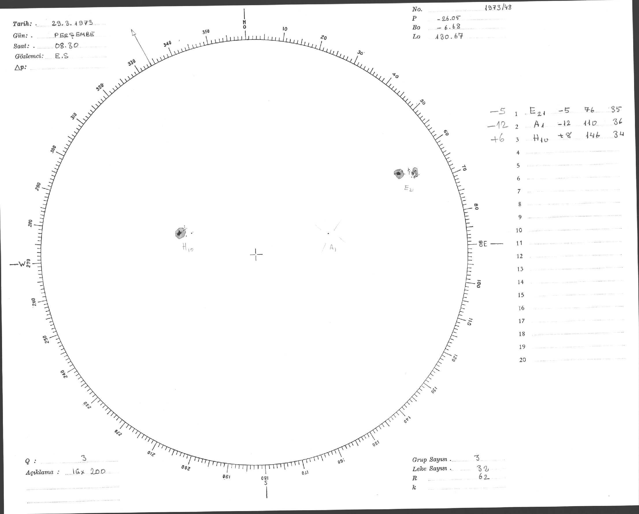 Güneş Lekesi Çizimi - 29.03.1973
