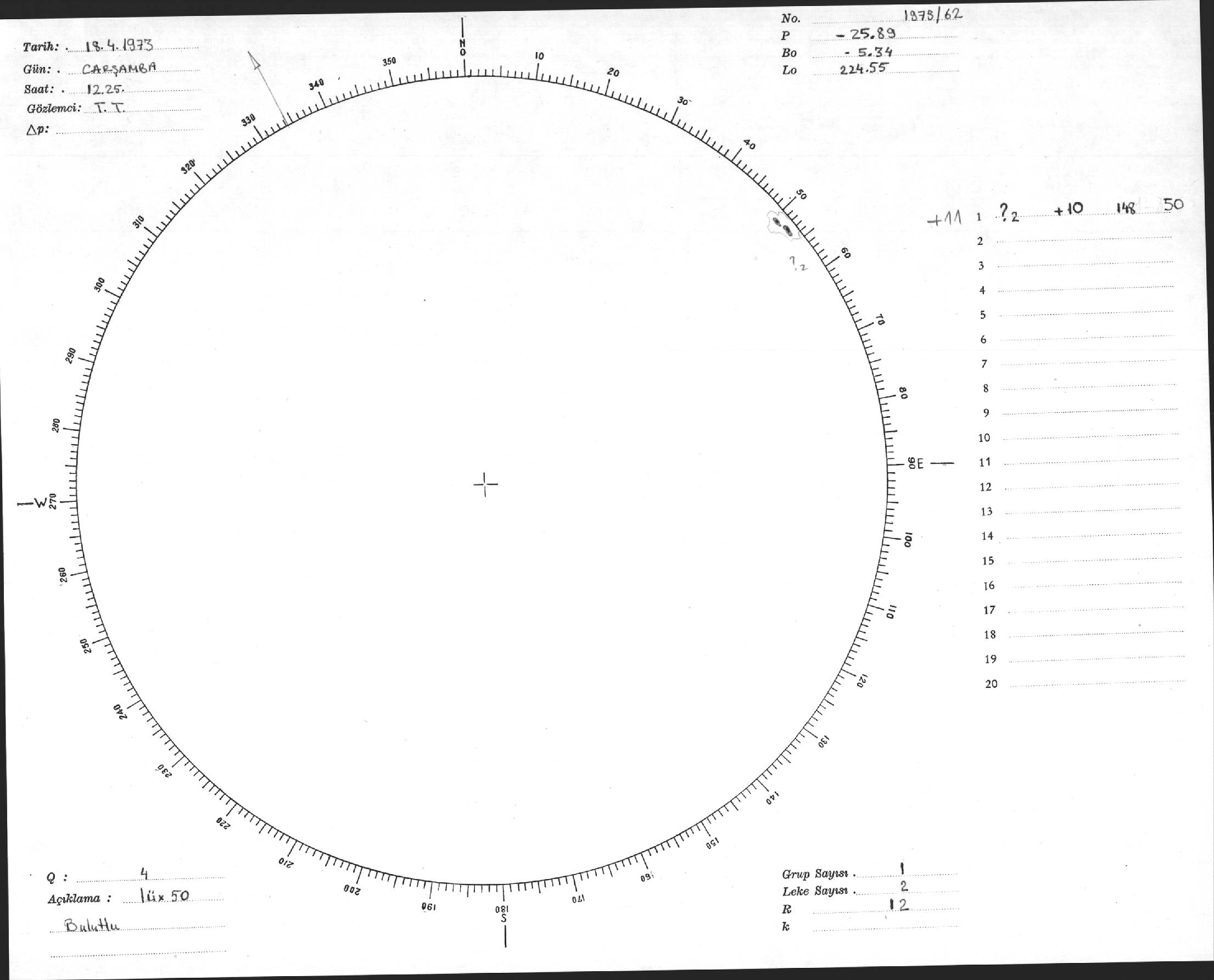 Güneş Lekesi Çizimi - 18.04.1973