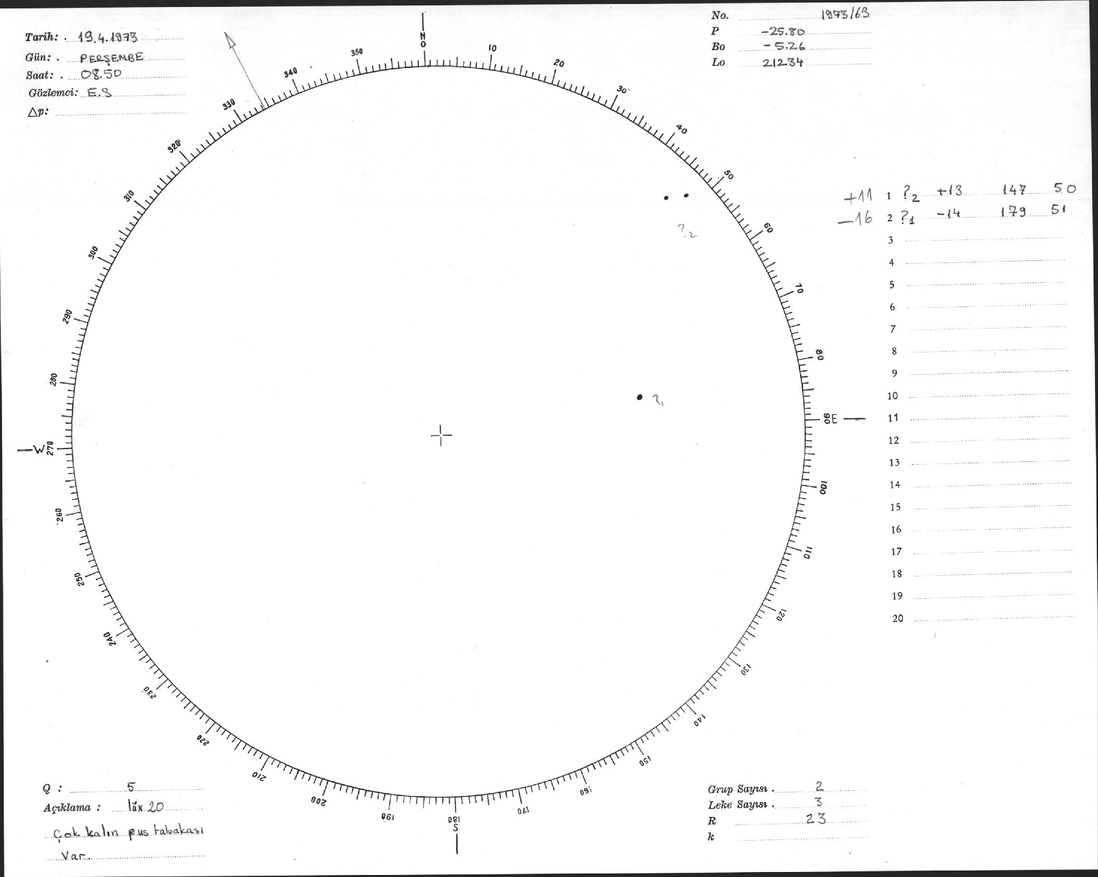 Güneş Lekesi Çizimi - 19.04.1973