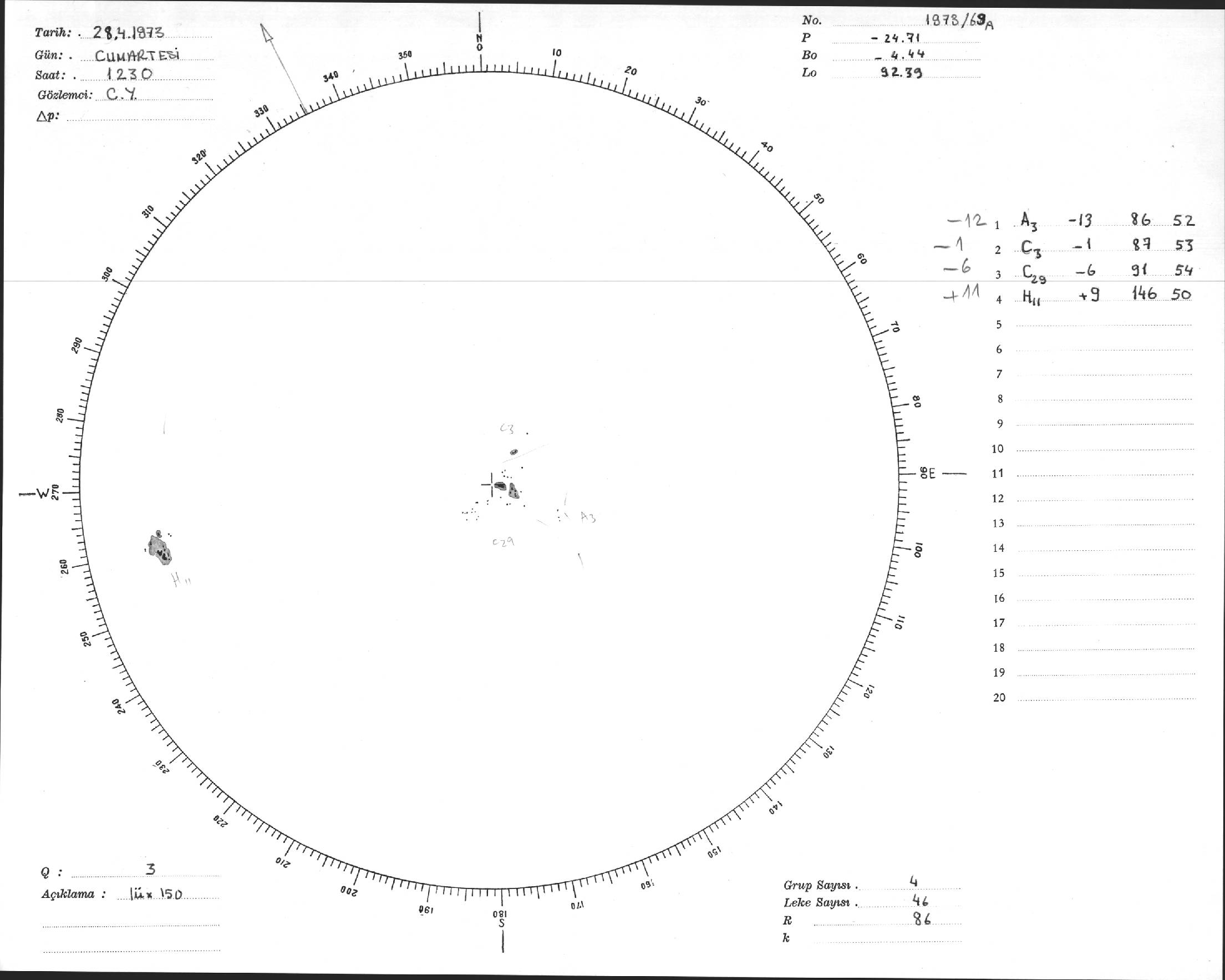 Güneş Lekesi Çizimi - 28.04.1973