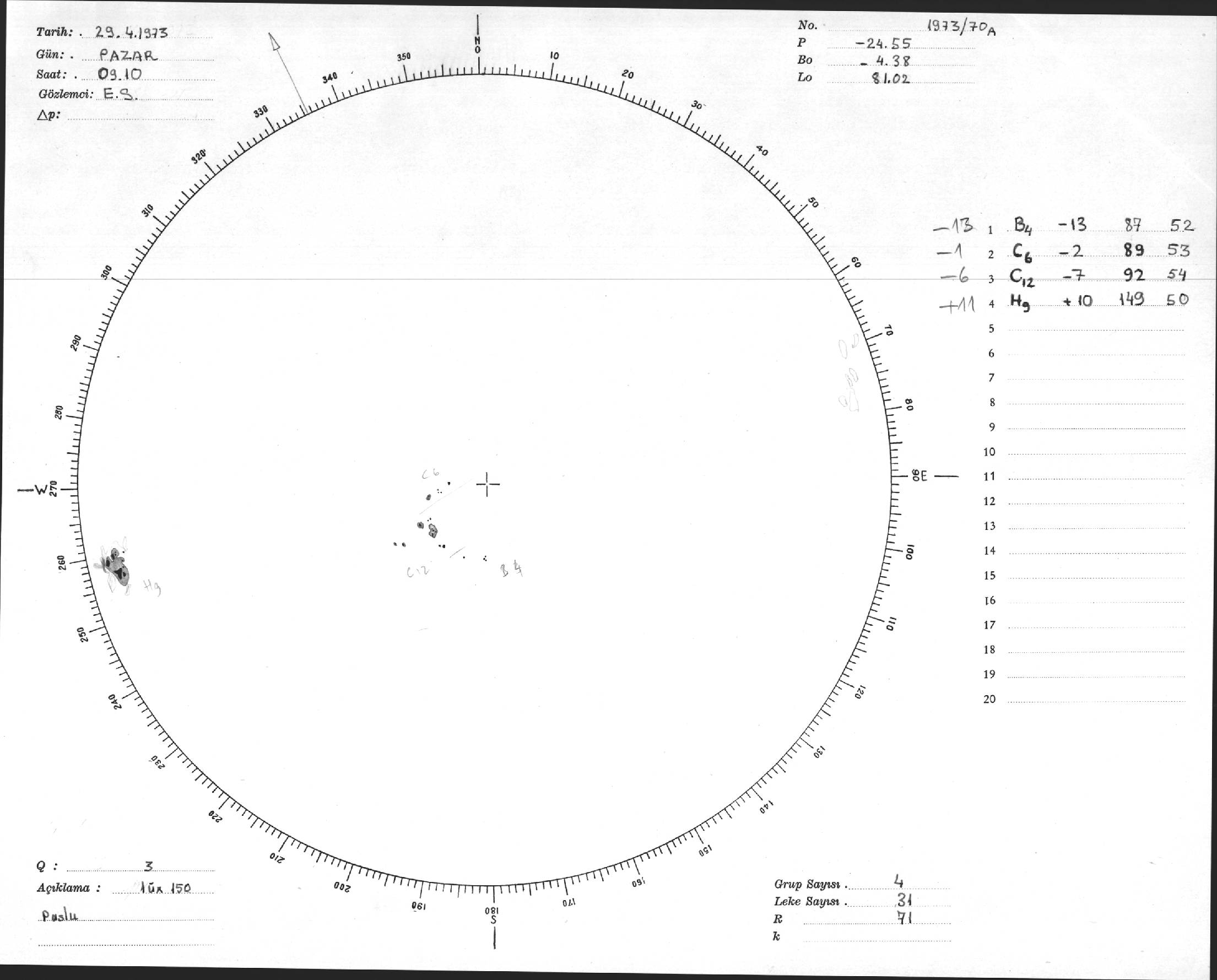 Güneş Lekesi Çizimi - 29.04.1973