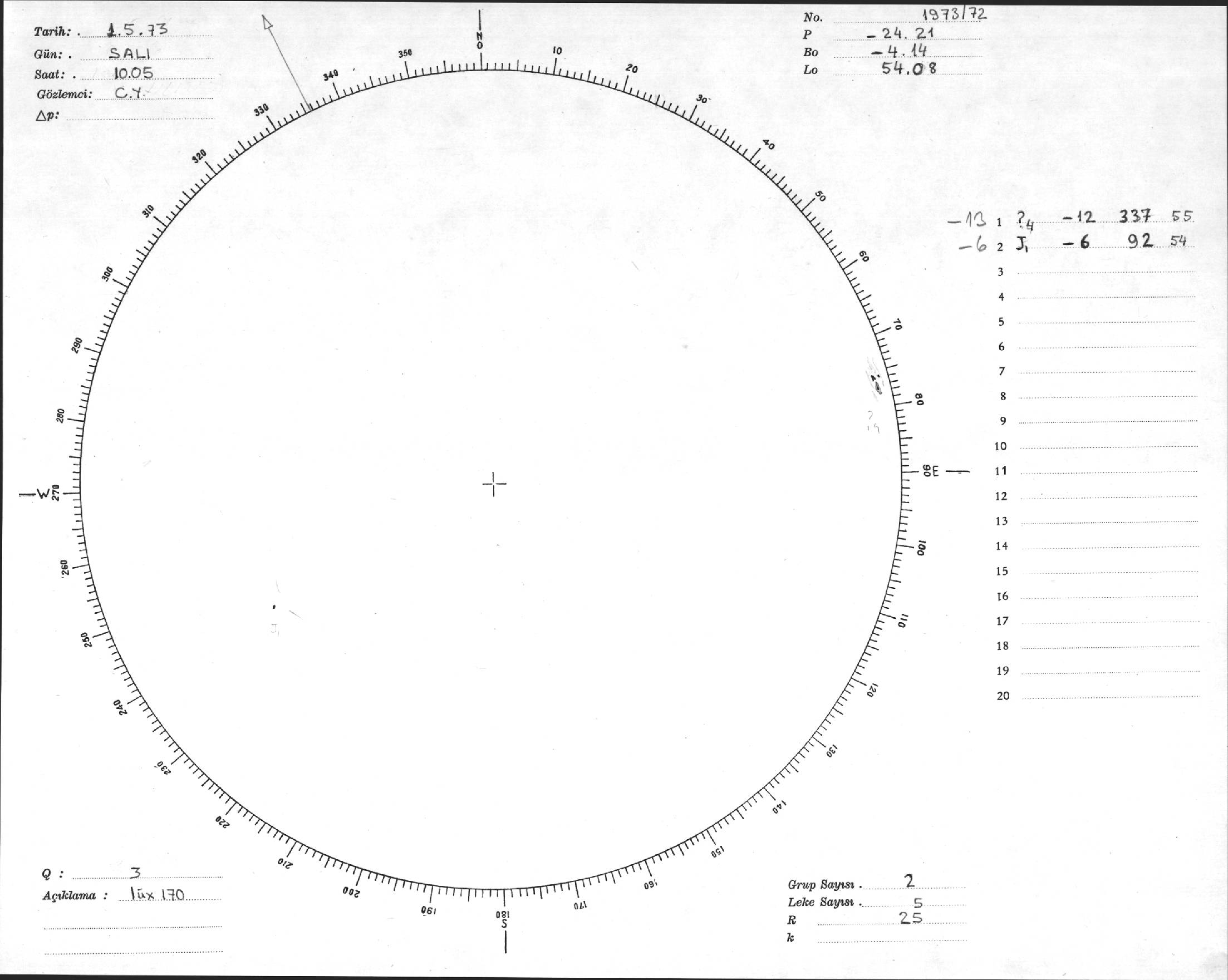 Güneş Lekesi Çizimi - 01.05.1973