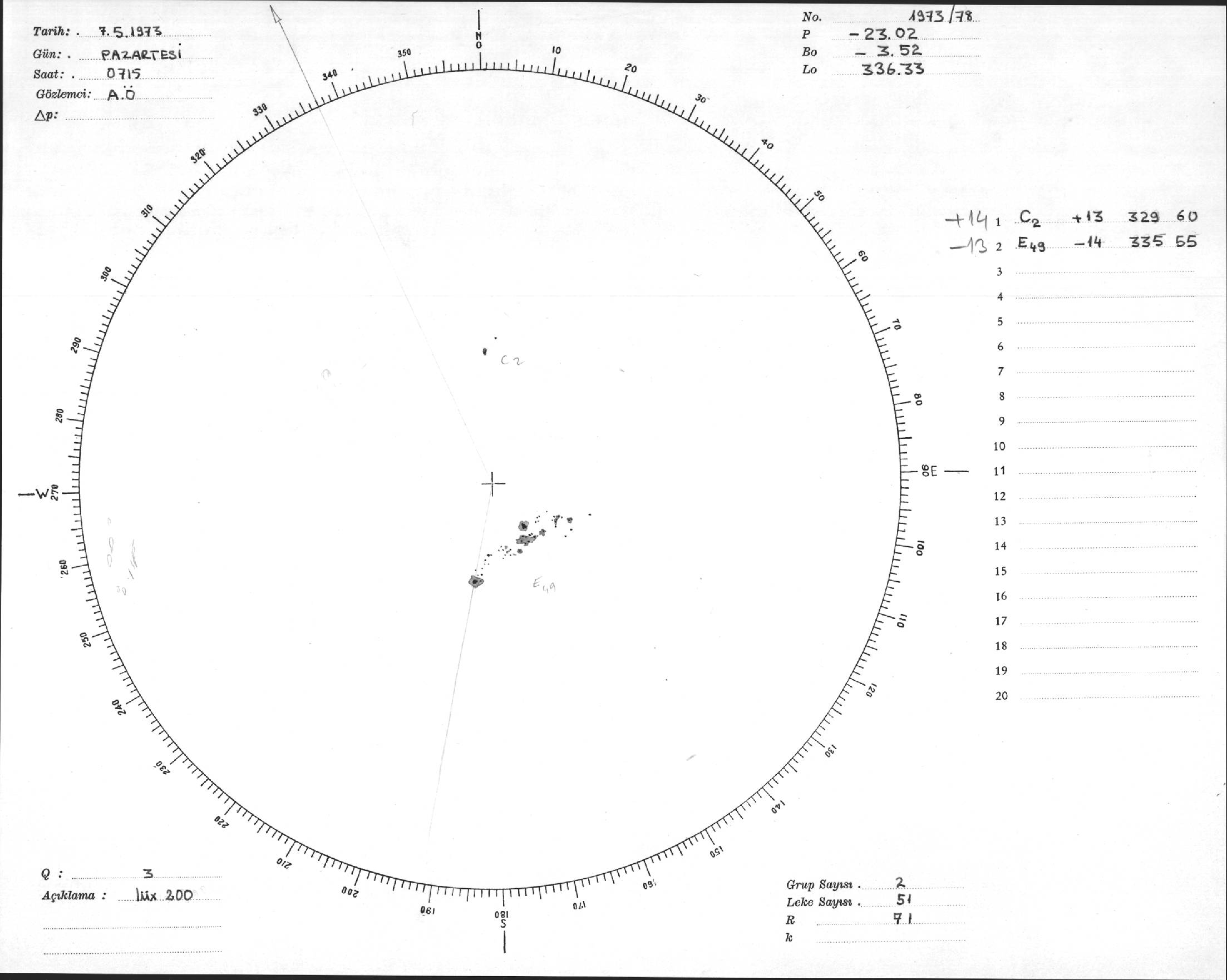 Güneş Lekesi Çizimi - 07.05.1973