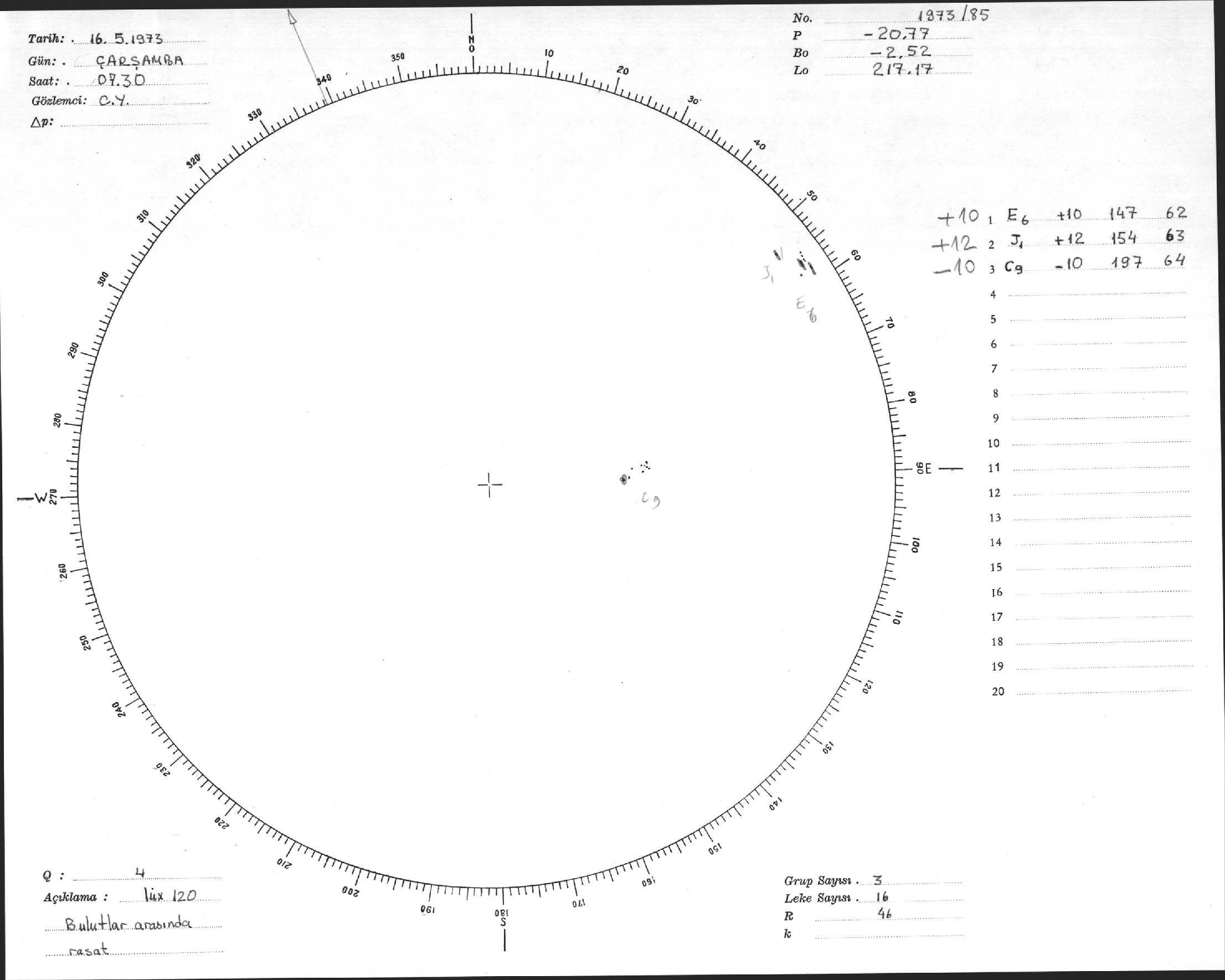 Güneş Lekesi Çizimi - 16.05.1973