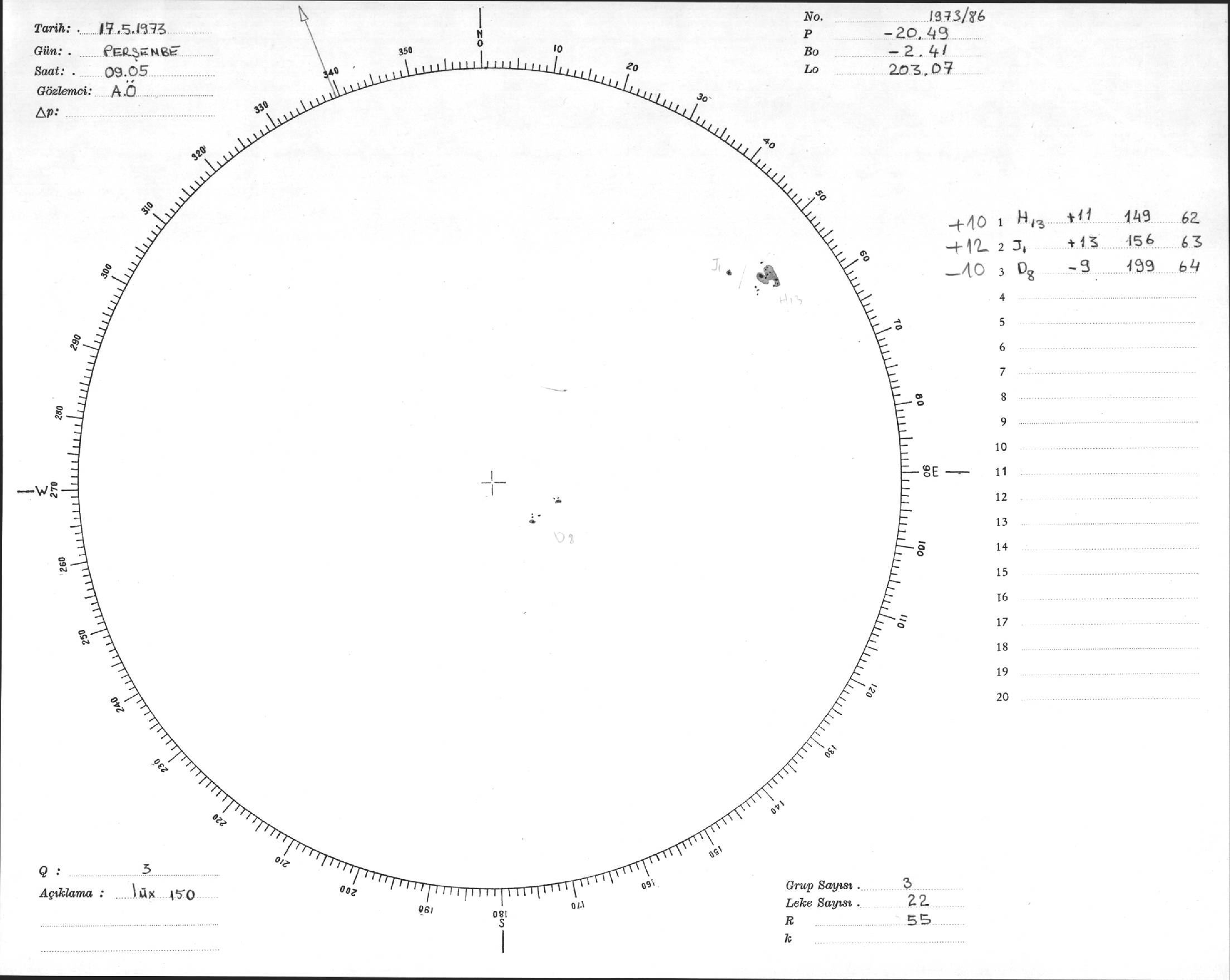 Güneş Lekesi Çizimi - 17.05.1973