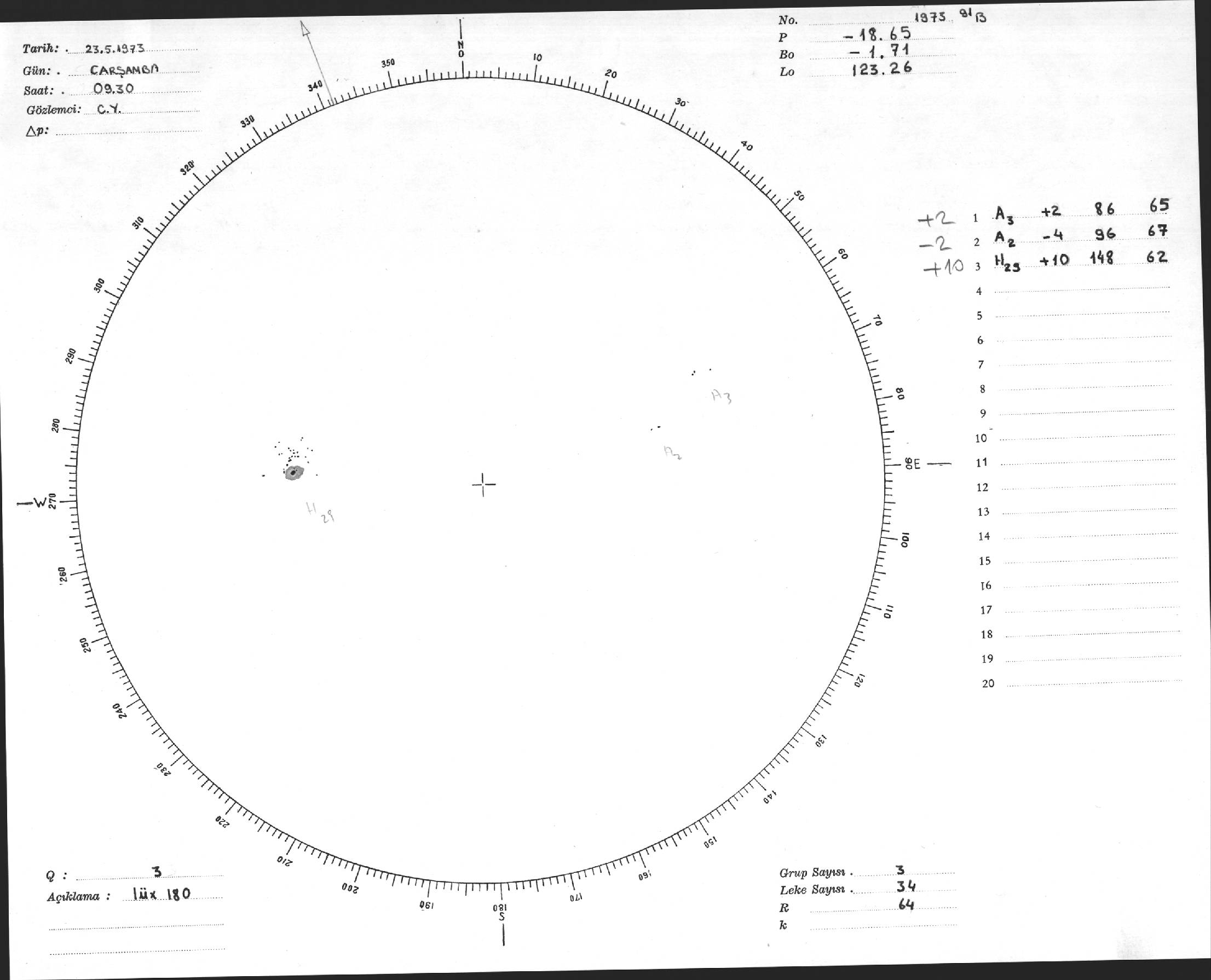 Güneş Lekesi Çizimi - 23.05.1973