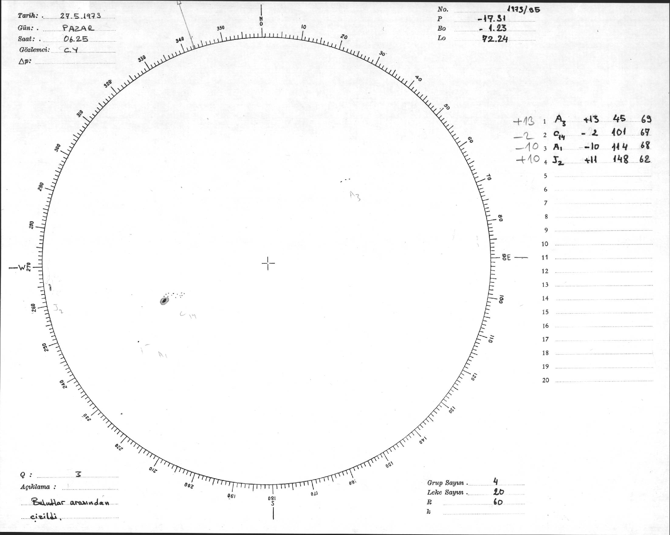 Güneş Lekesi Çizimi - 27.05.1973