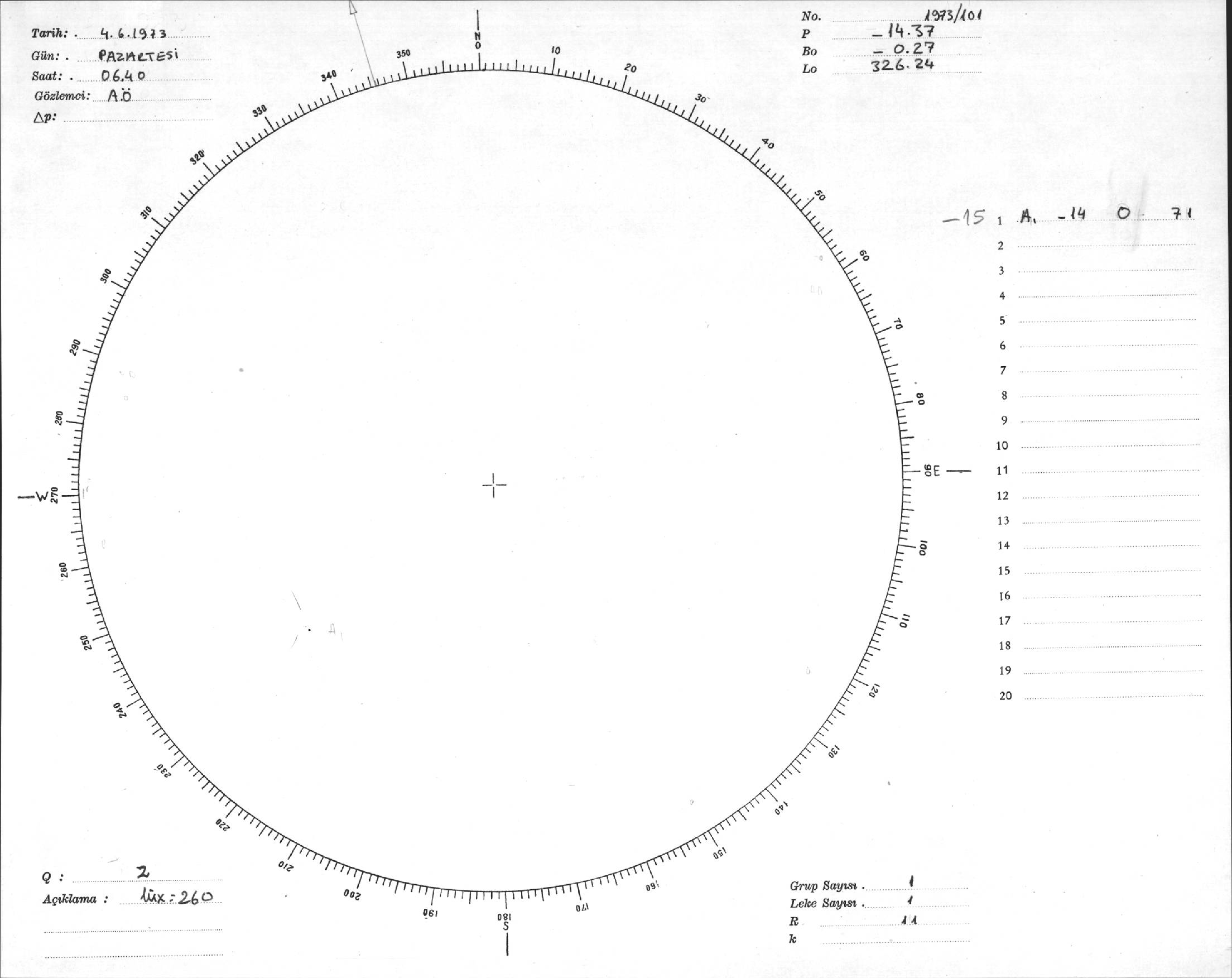 Güneş Lekesi Çizimi - 04.06.1973