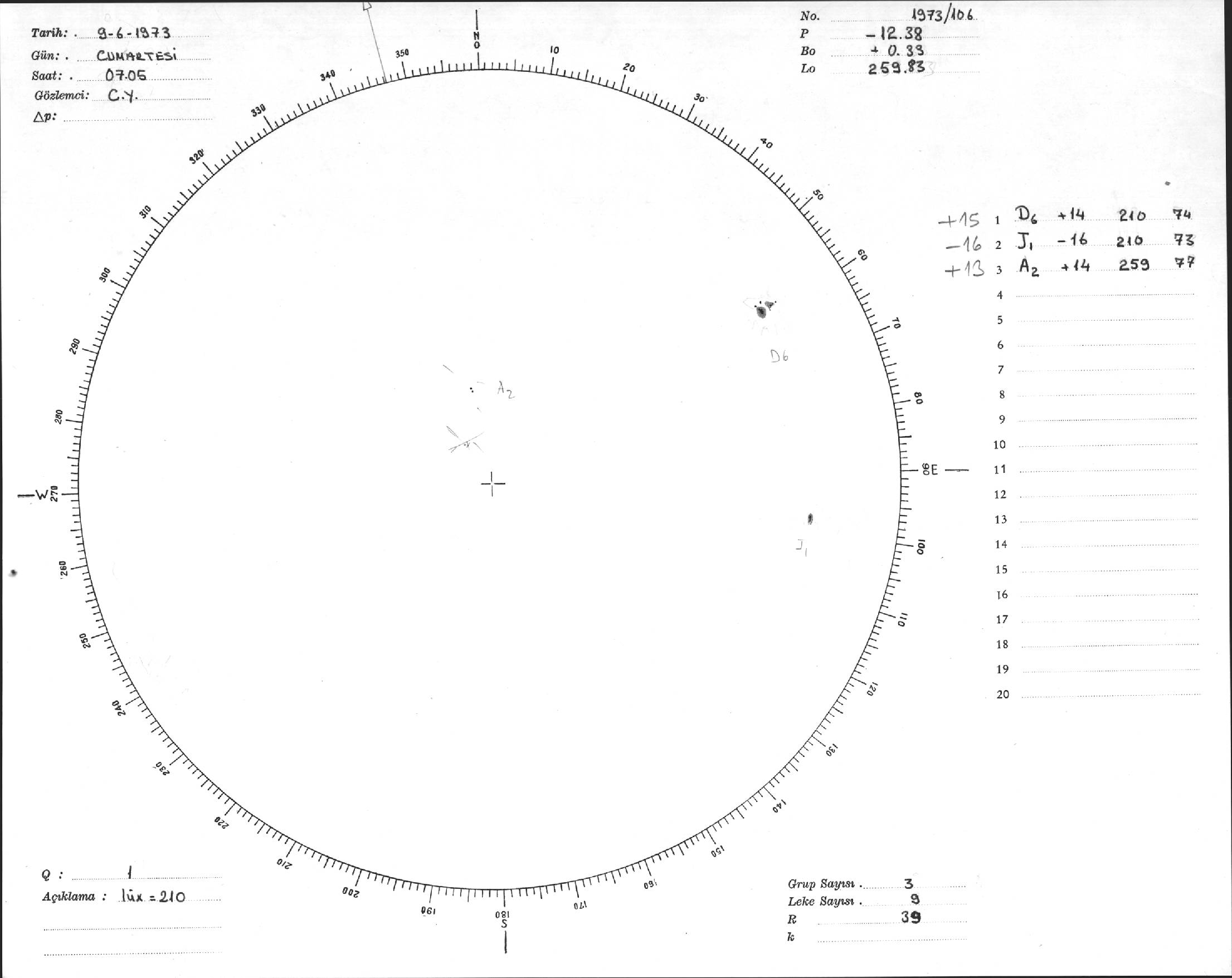 Güneş Lekesi Çizimi - 09.06.1973