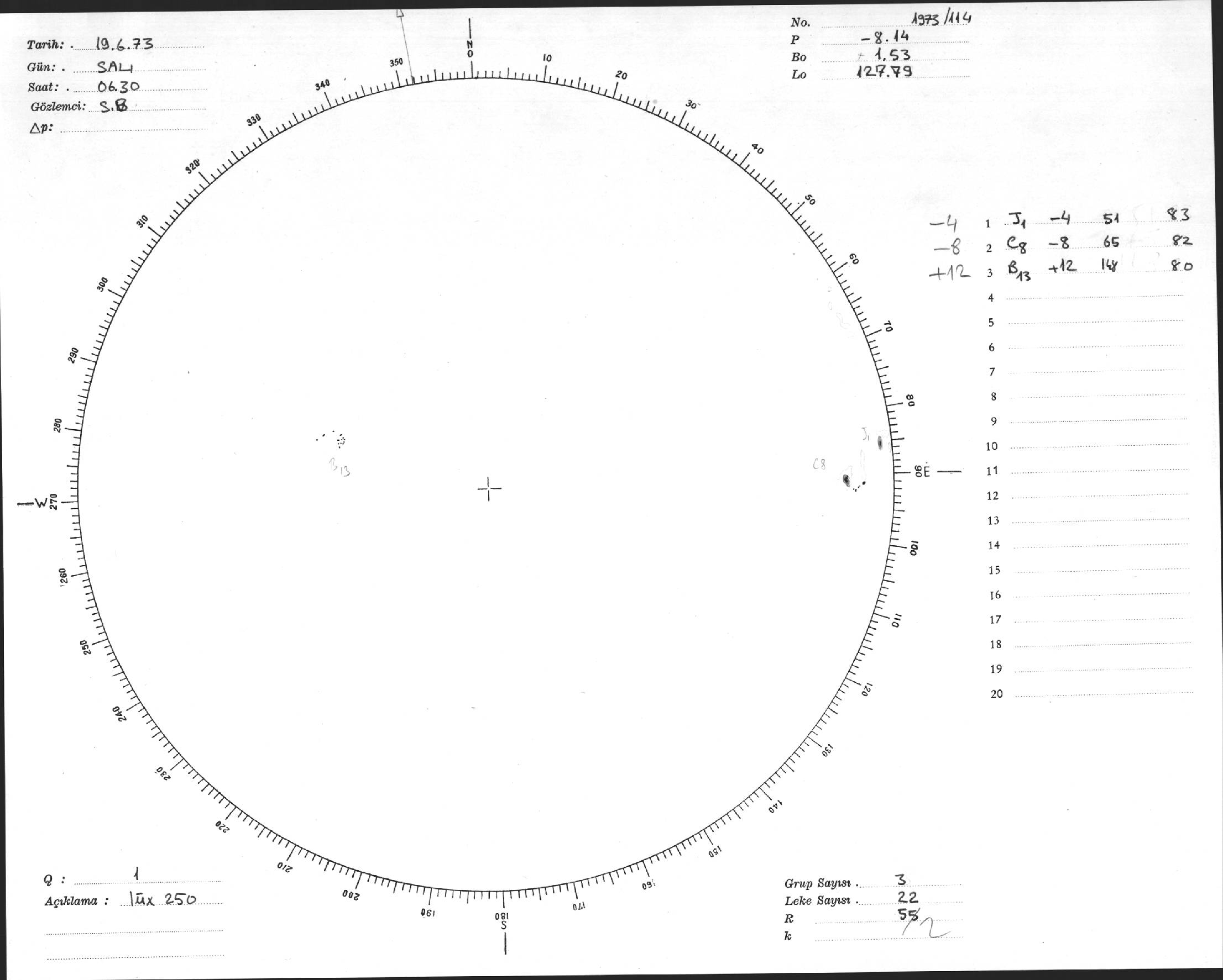 Güneş Lekesi Çizimi - 19.06.1973