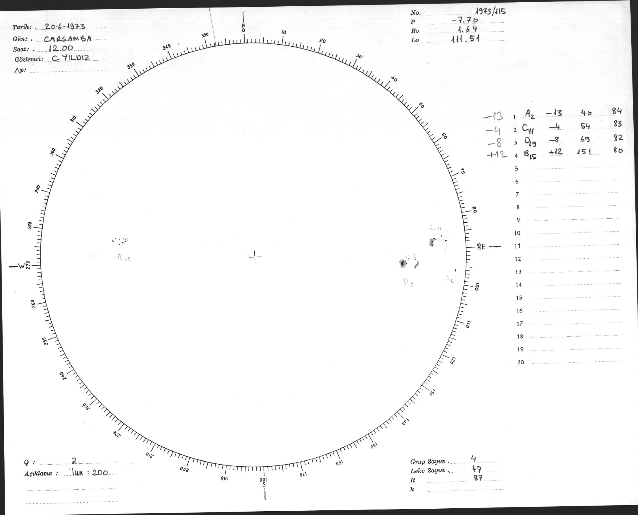 Güneş Lekesi Çizimi - 20.06.1973