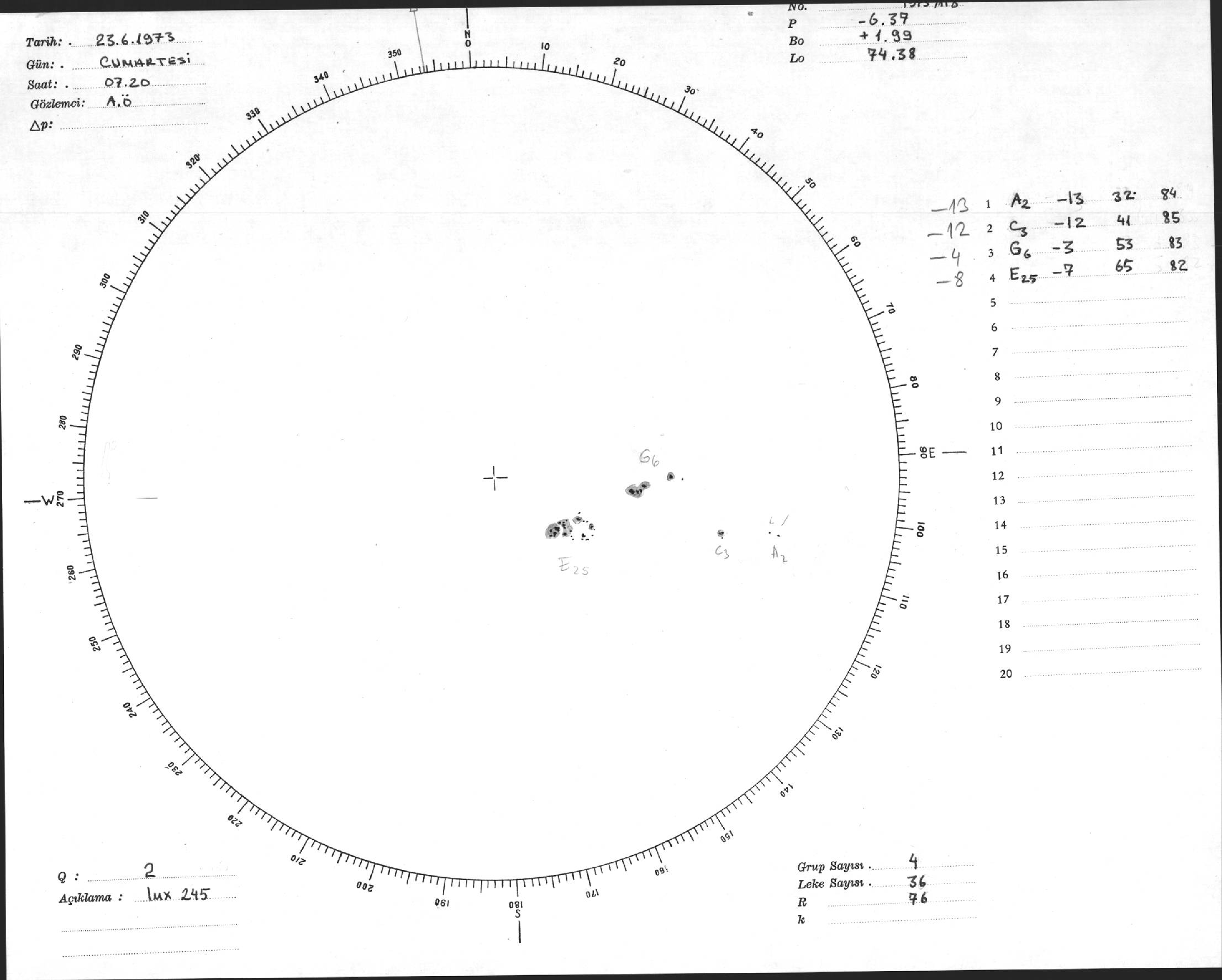 Güneş Lekesi Çizimi - 23.06.1973