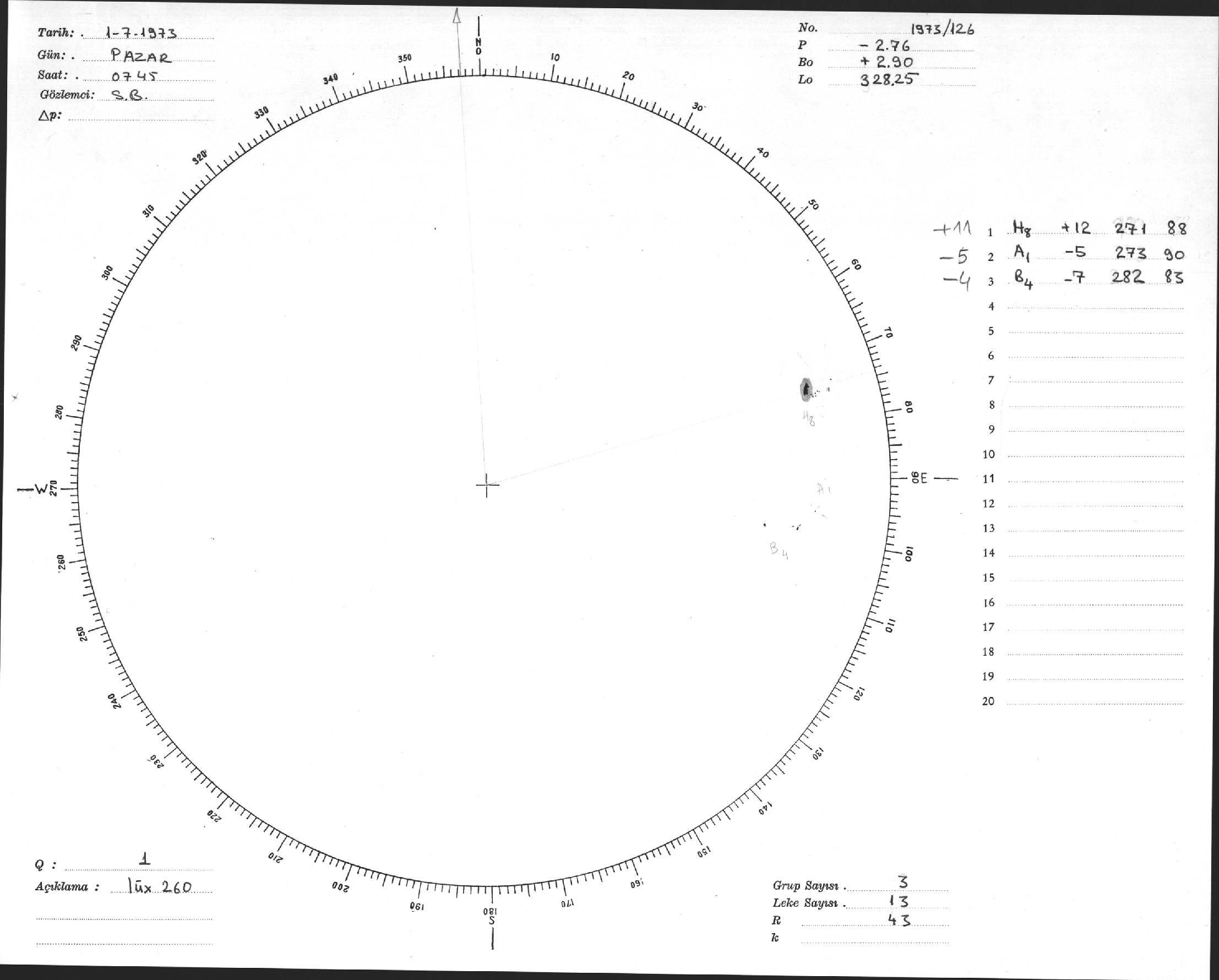 Güneş Lekesi Çizimi - 01.07.1973