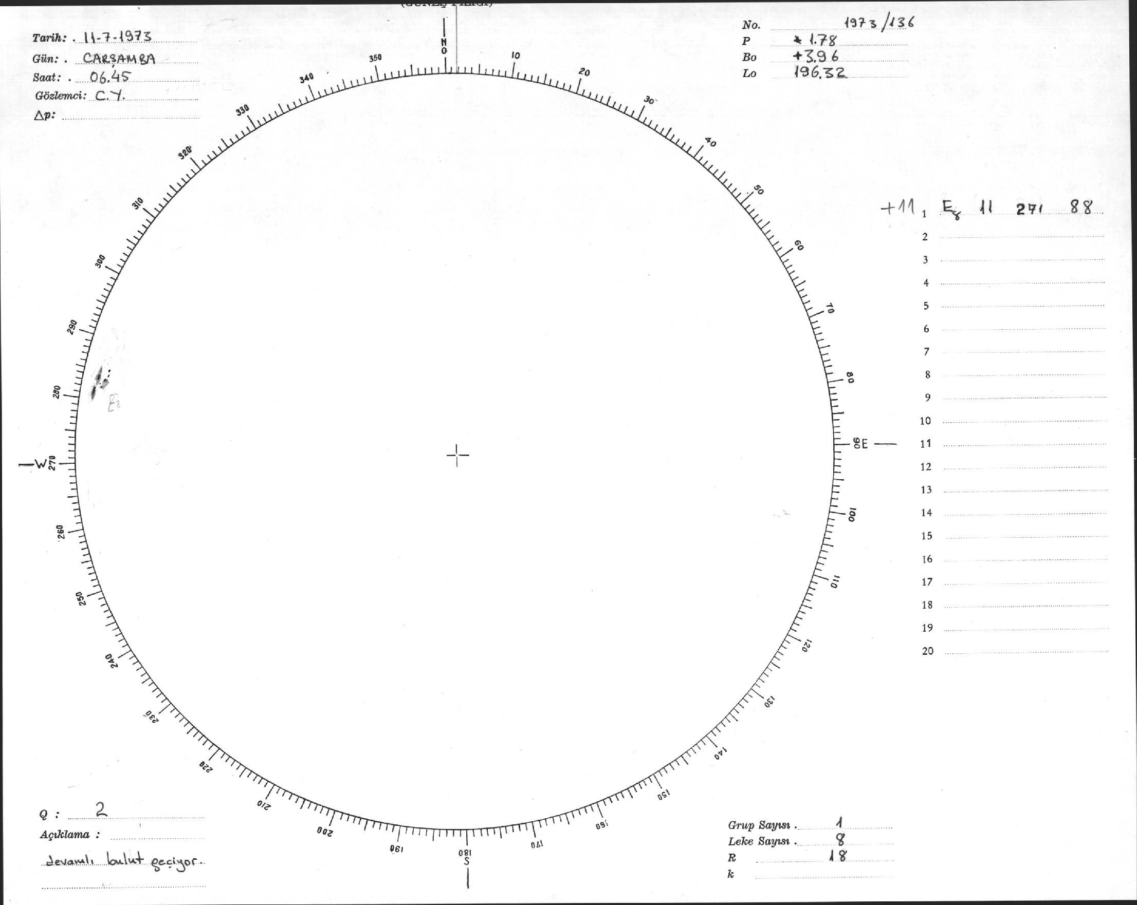 Güneş Lekesi Çizimi - 11.07.1973