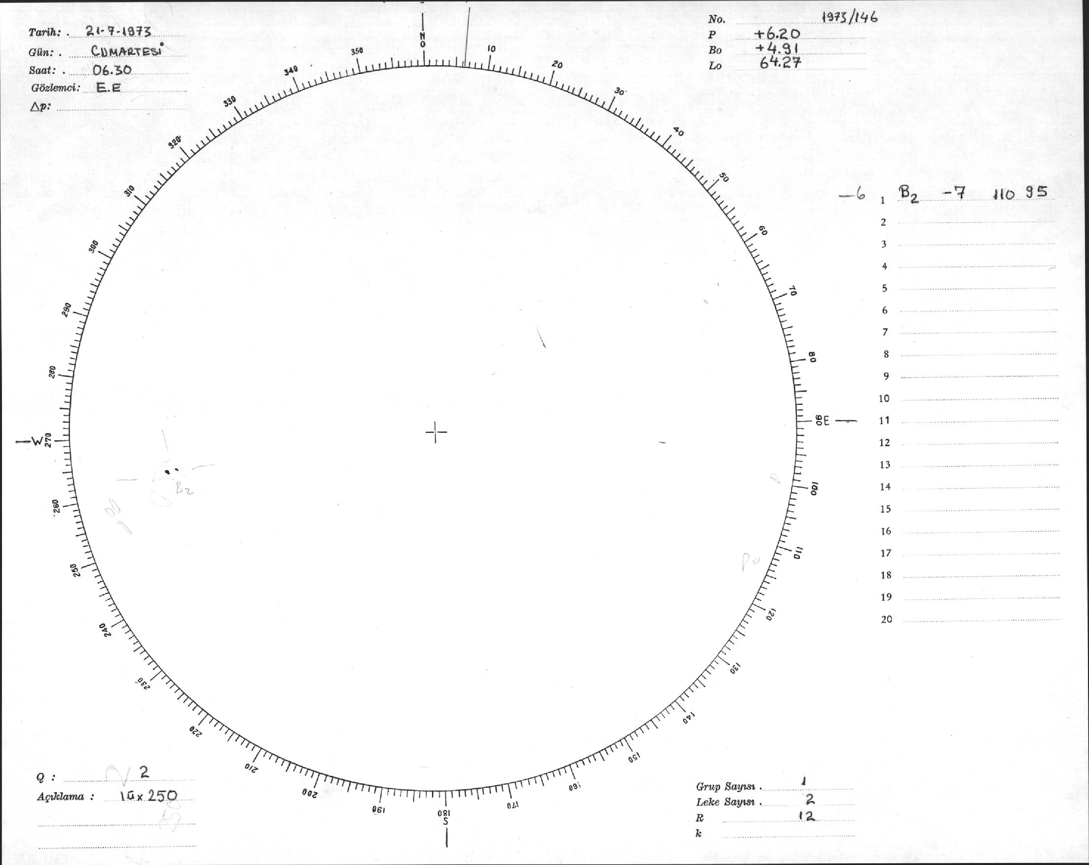 Güneş Lekesi Çizimi - 21.07.1973
