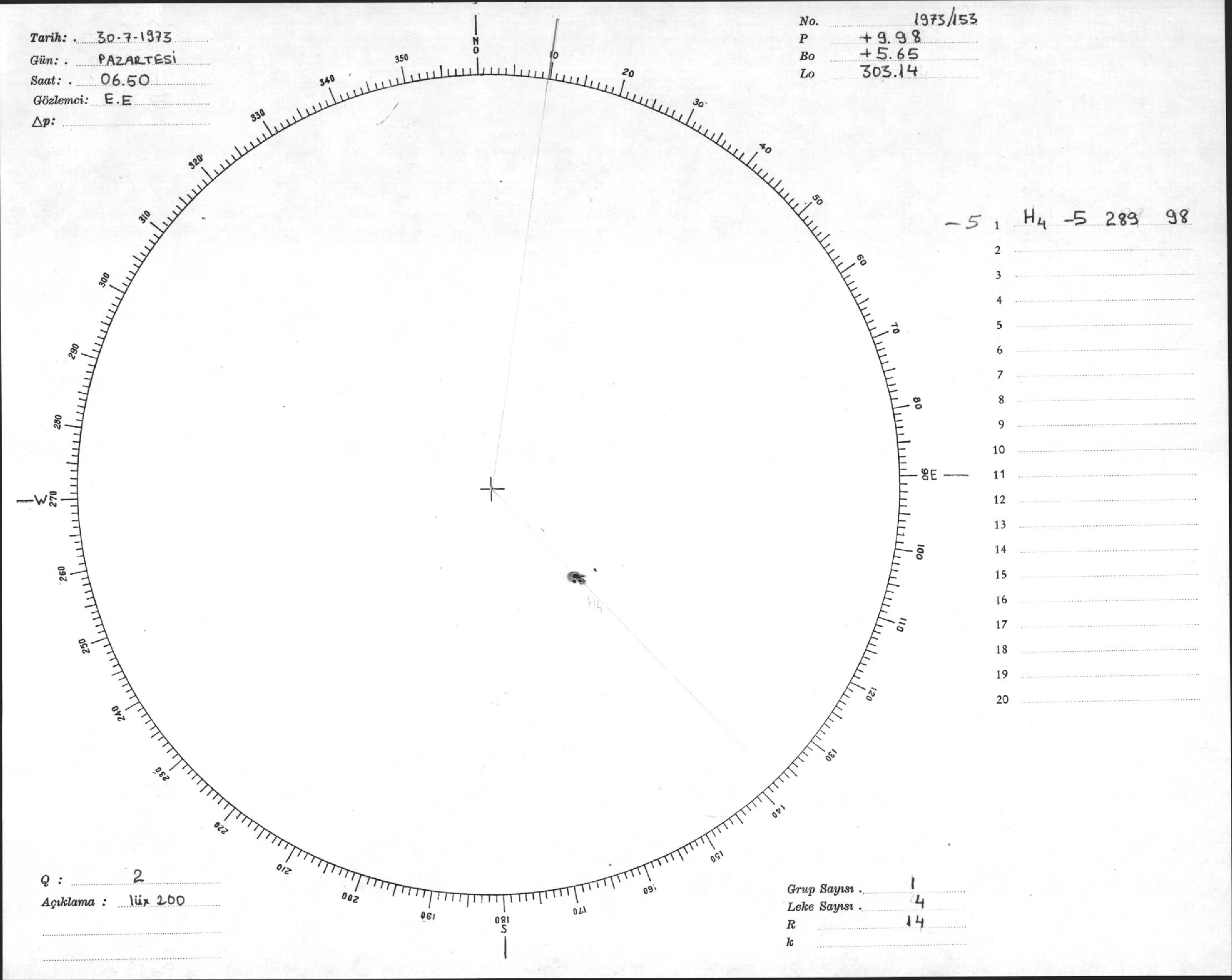Güneş Lekesi Çizimi - 30.07.1973