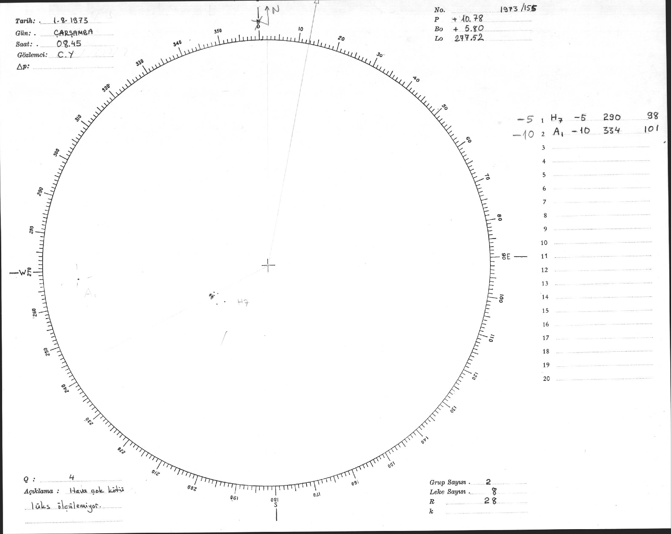 Güneş Lekesi Çizimi - 01.08.1973