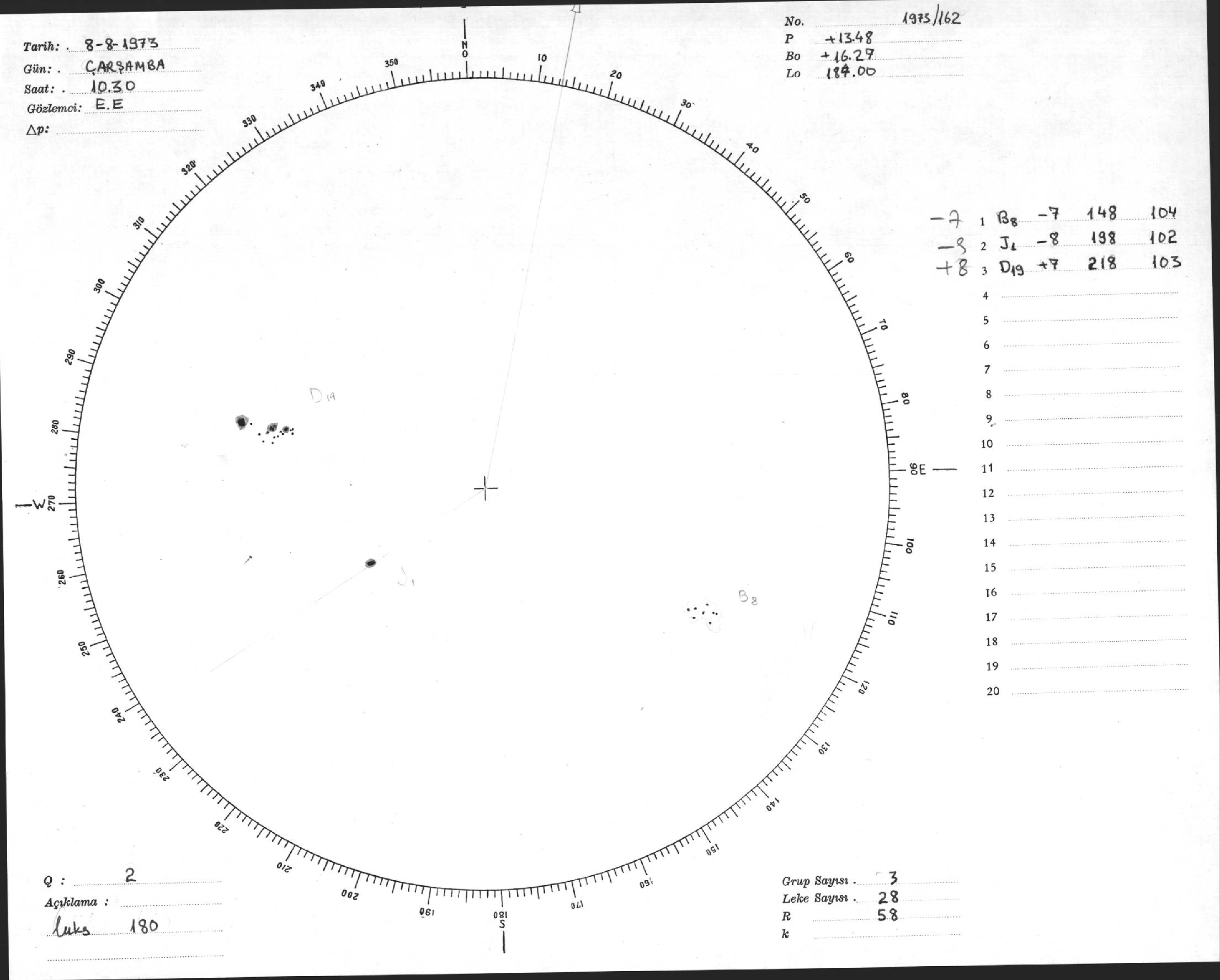 Güneş Lekesi Çizimi - 08.08.1973
