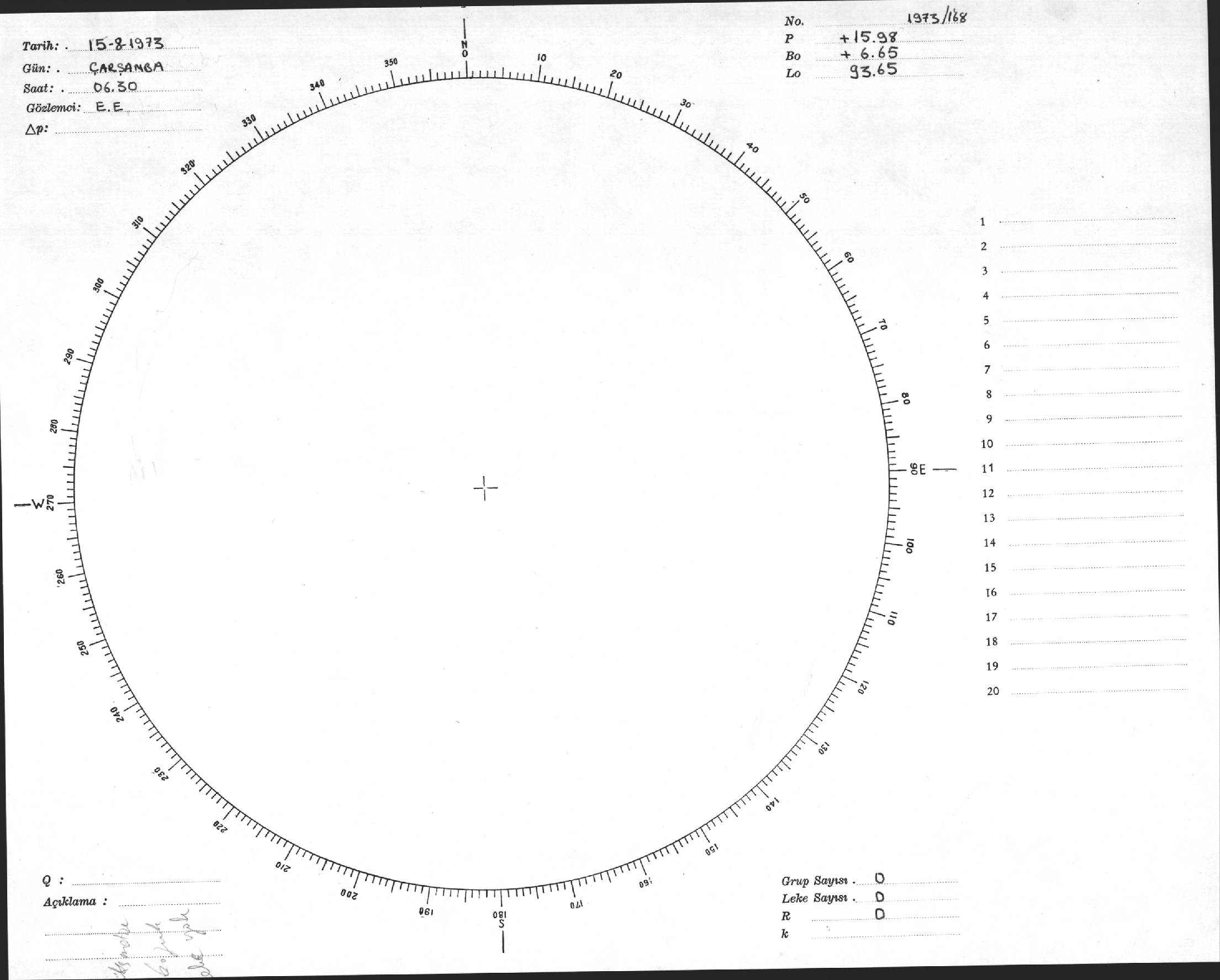 Güneş Lekesi Çizimi - 15.08.1973