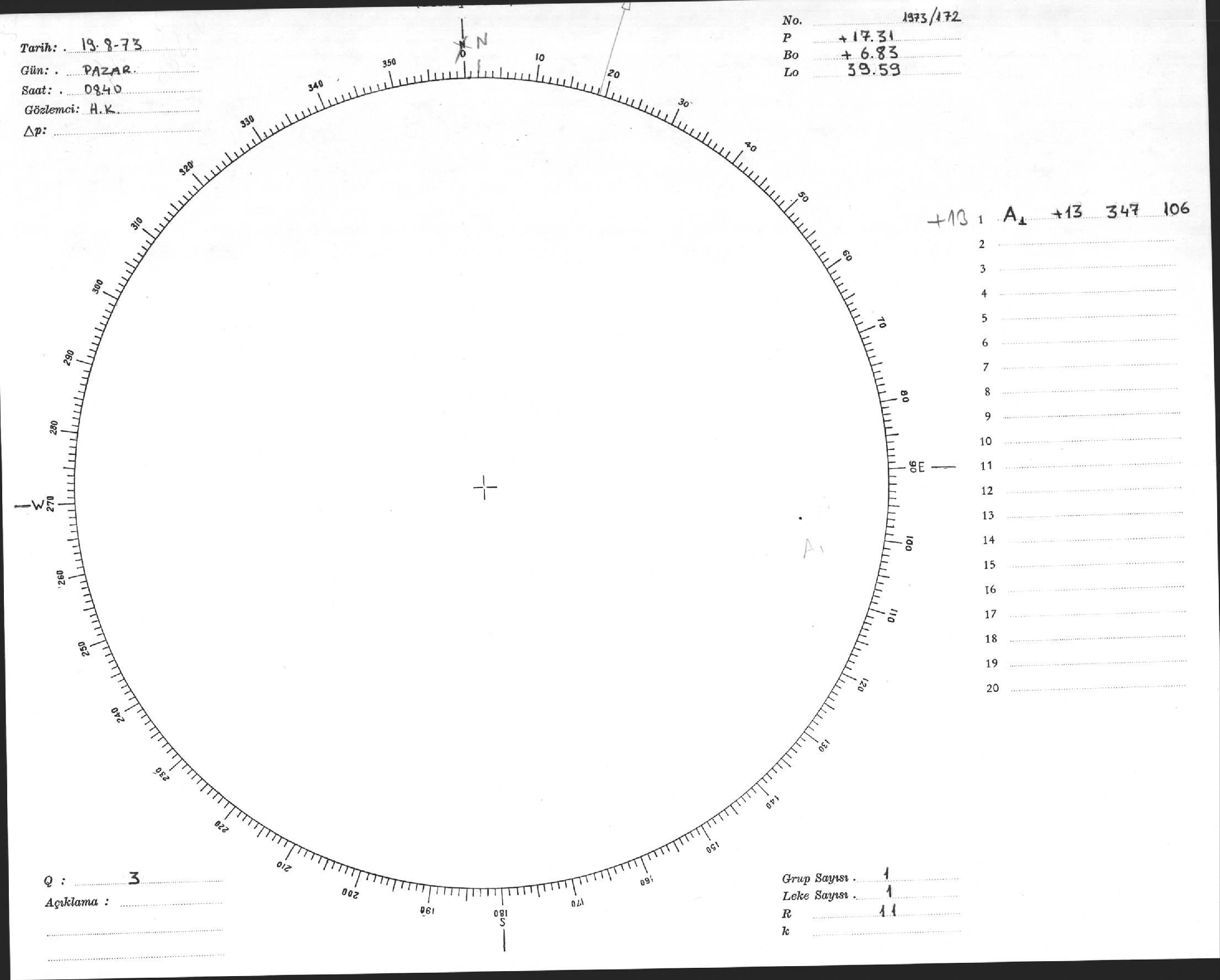 Güneş Lekesi Çizimi - 19.08.1973