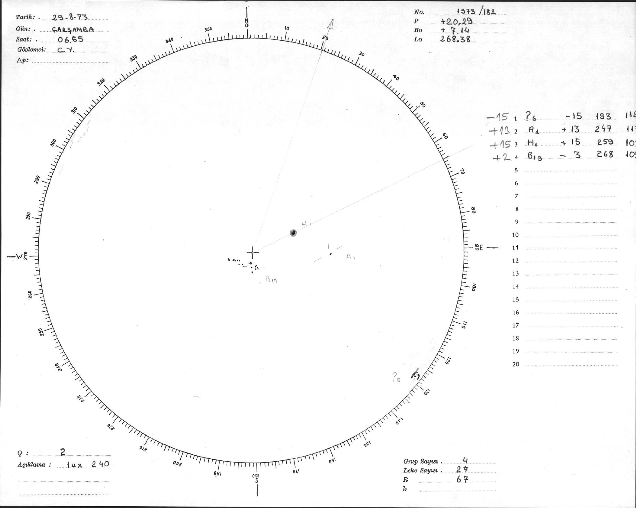 Güneş Lekesi Çizimi - 29.08.1973