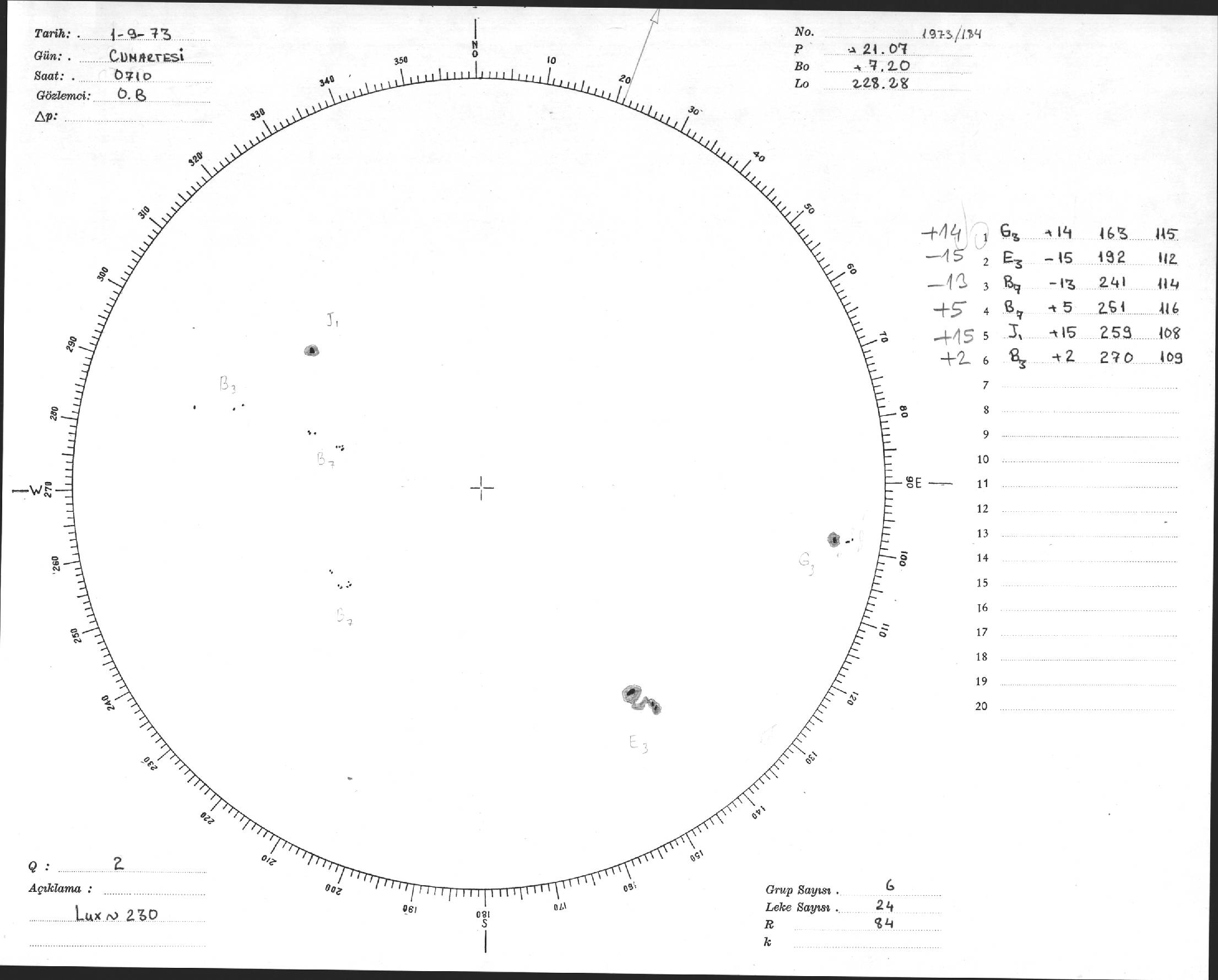 Güneş Lekesi Çizimi - 01.09.1973