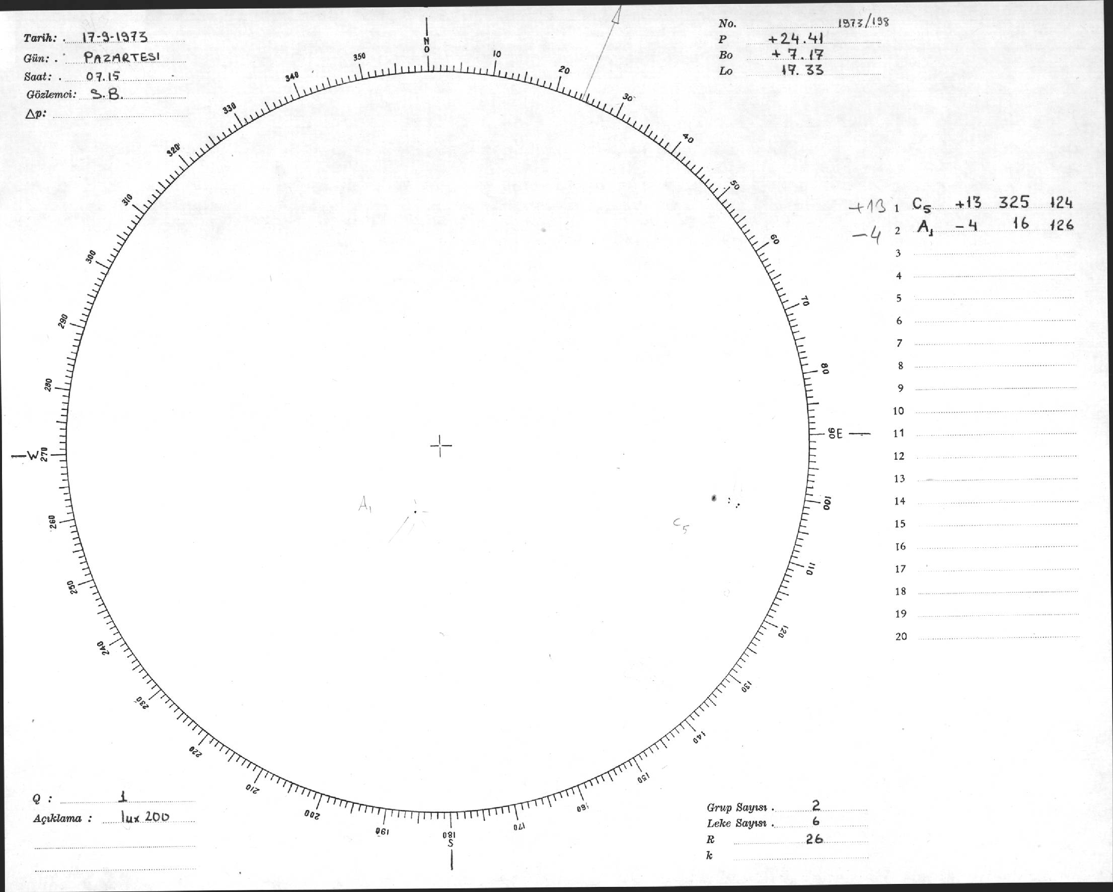 Güneş Lekesi Çizimi - 17.09.1973