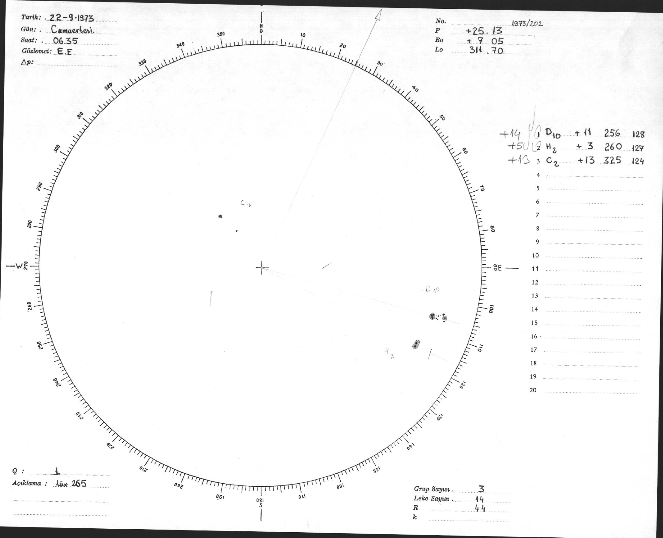 Güneş Lekesi Çizimi - 22.09.1973