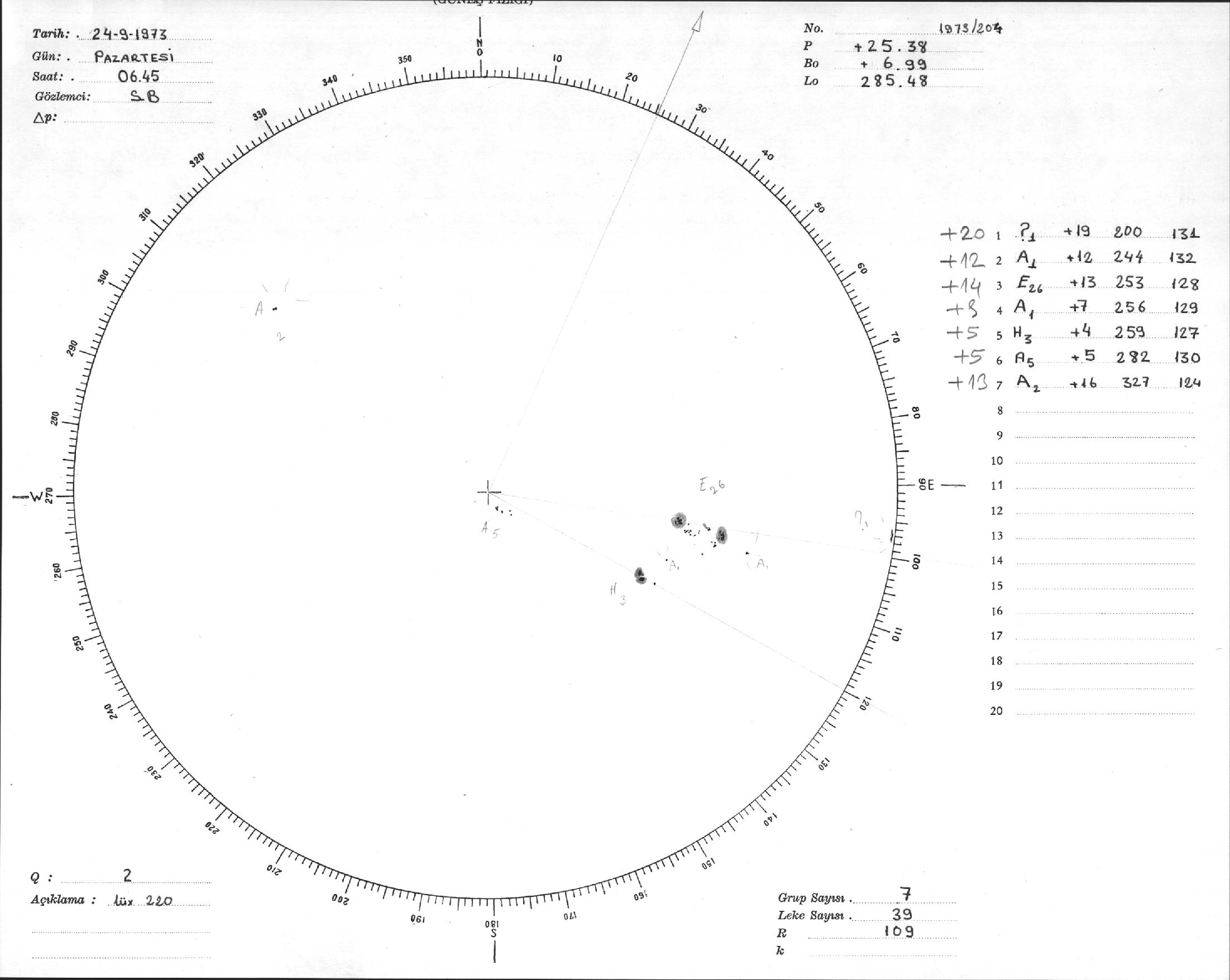 Güneş Lekesi Çizimi - 24.09.1973