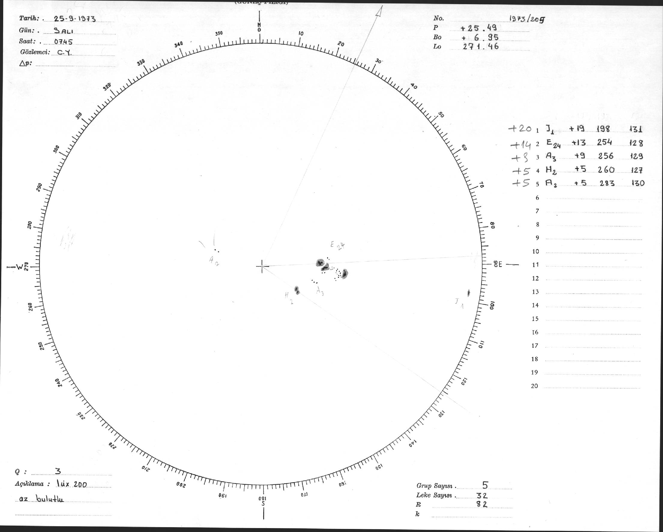 Güneş Lekesi Çizimi - 25.09.1973