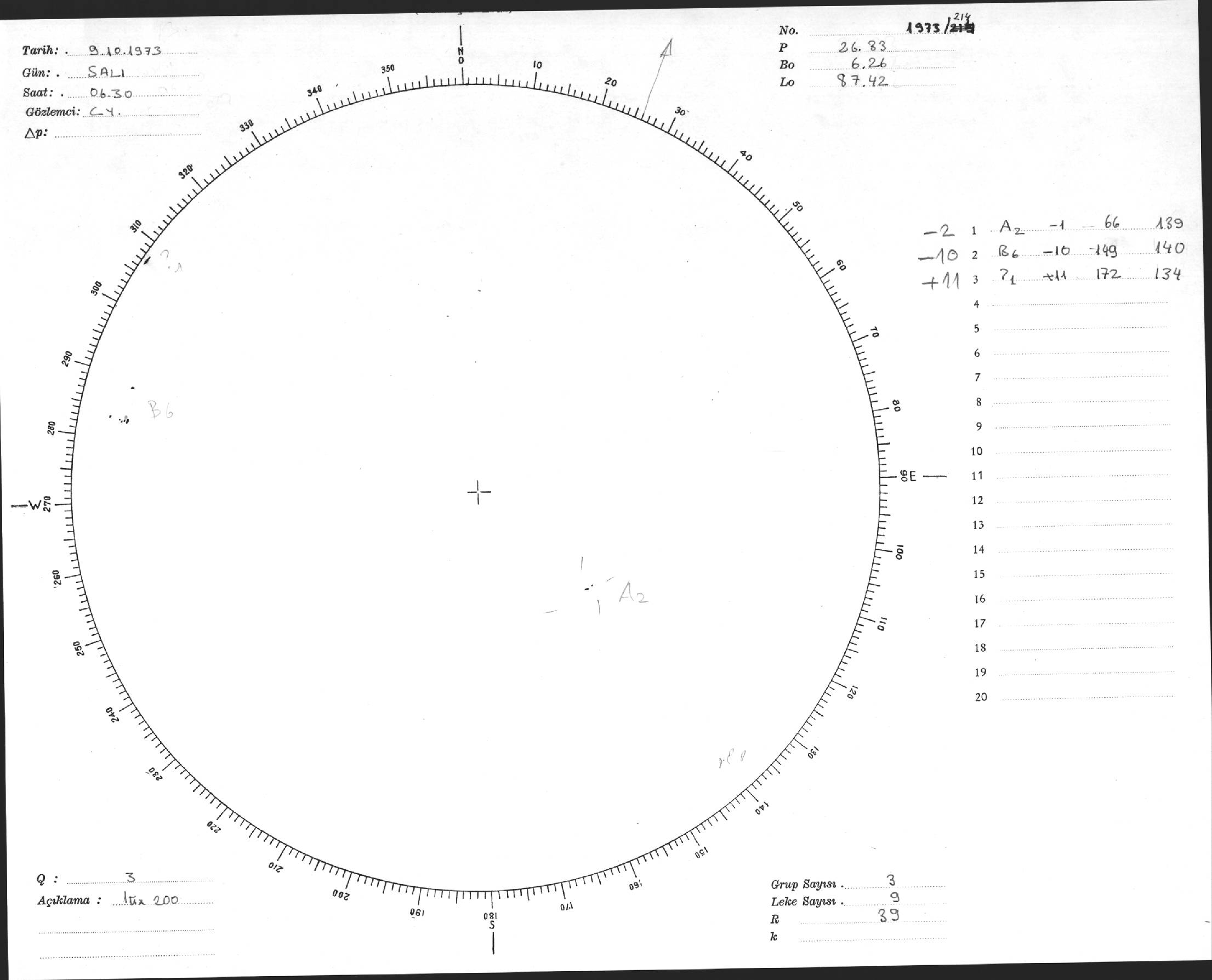 Güneş Lekesi Çizimi - 09.10.1973