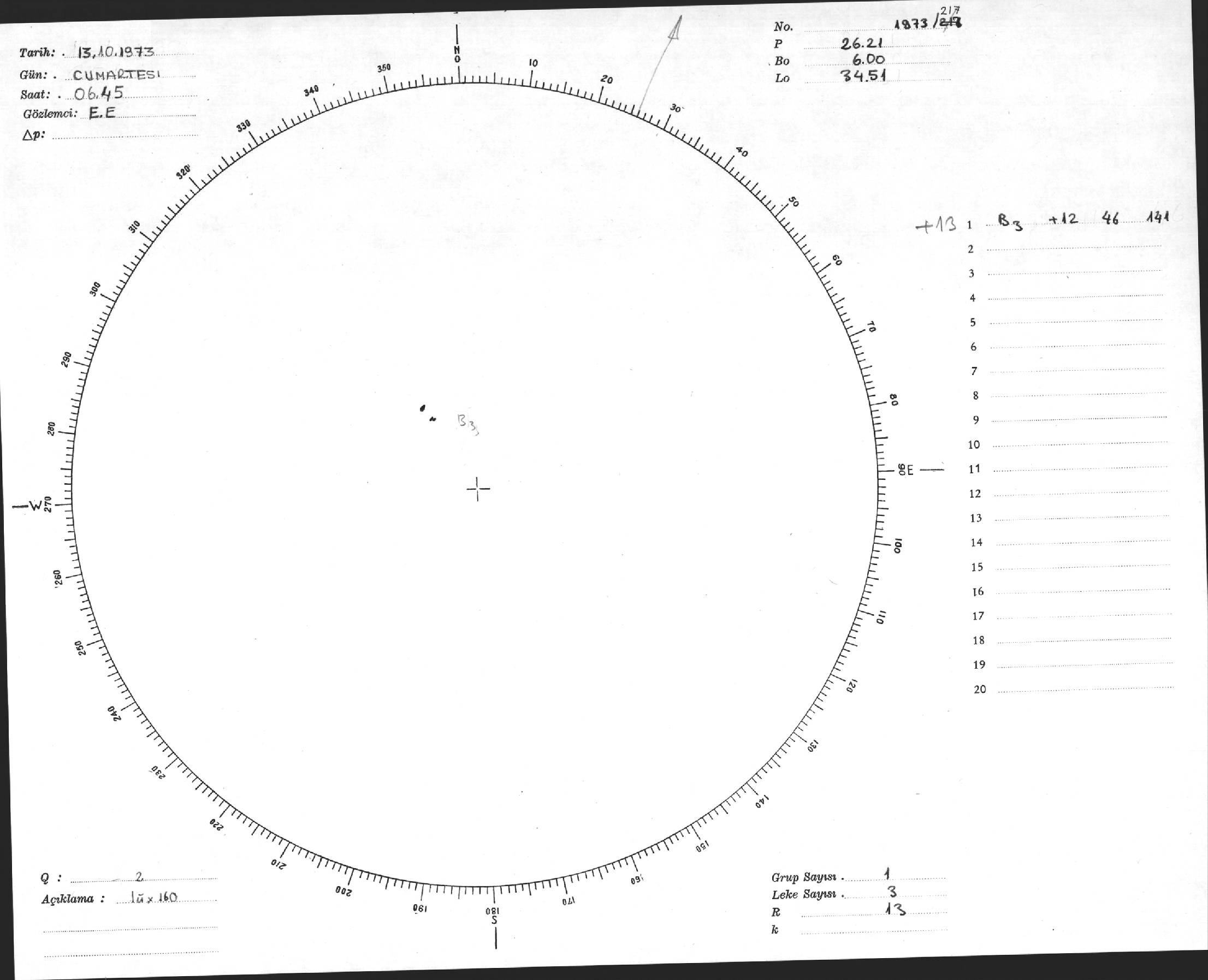 Güneş Lekesi Çizimi - 13.10.1973