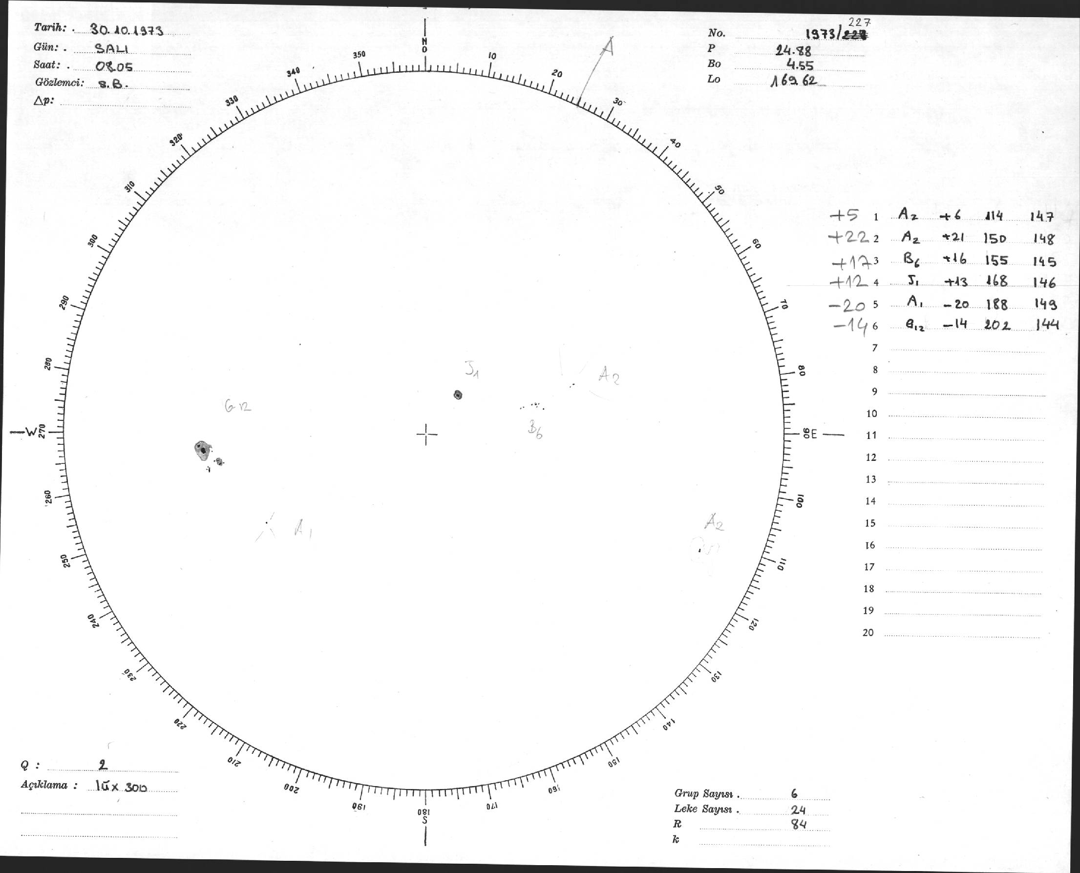 Güneş Lekesi Çizimi - 30.10.1973