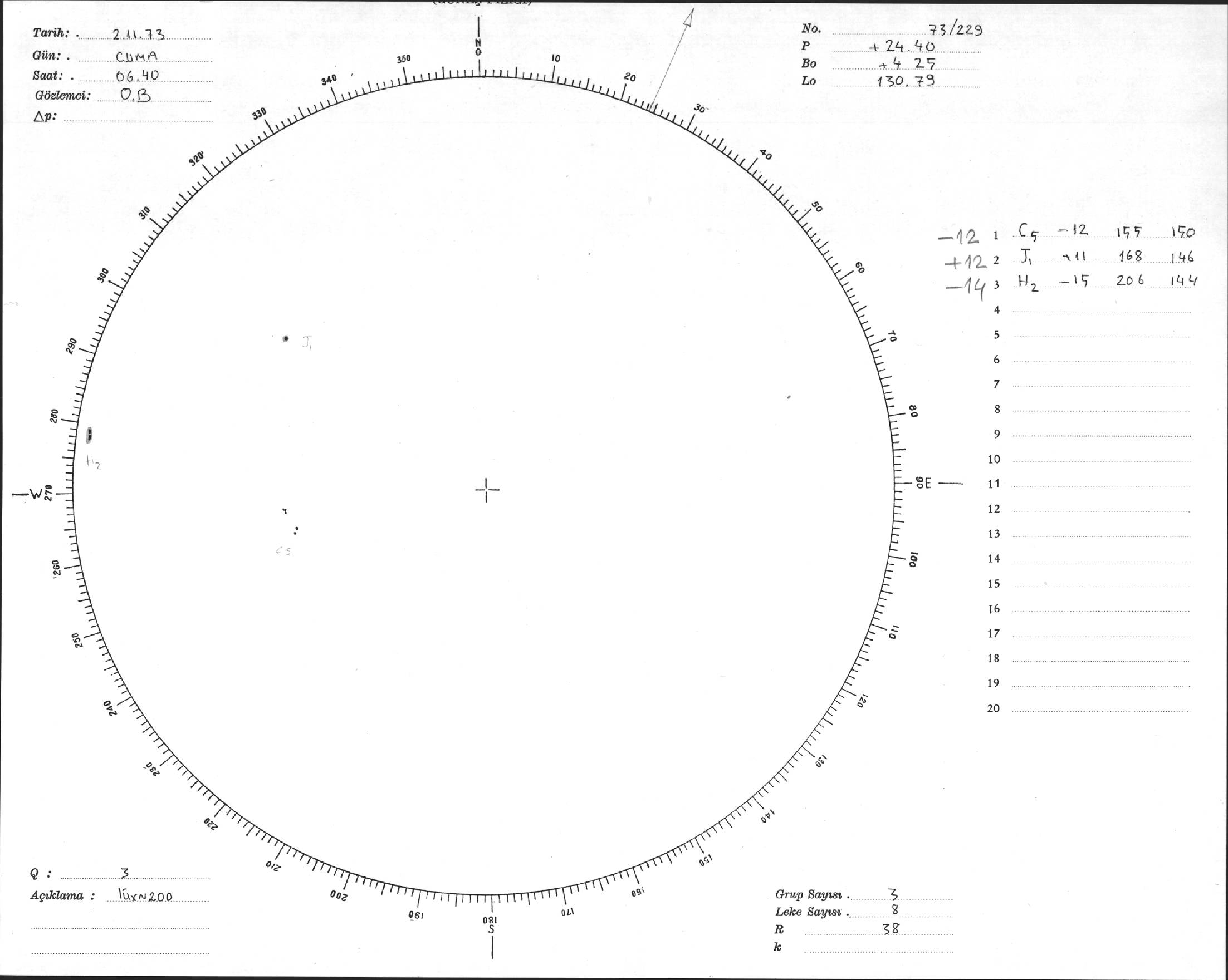 Güneş Lekesi Çizimi - 02.11.1973