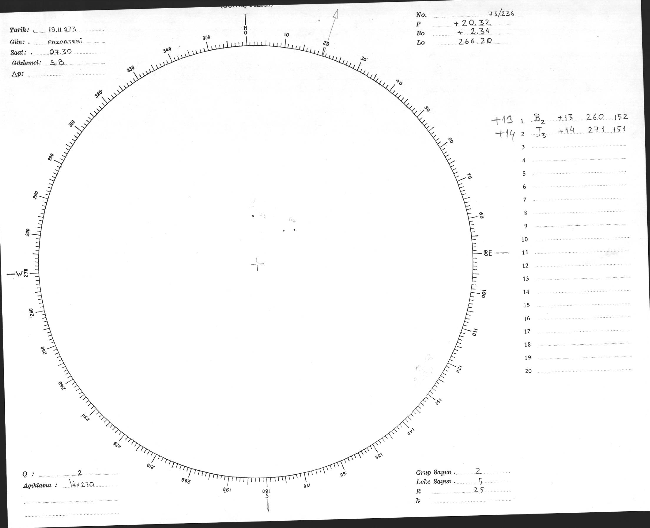 Güneş Lekesi Çizimi - 19.11.1973