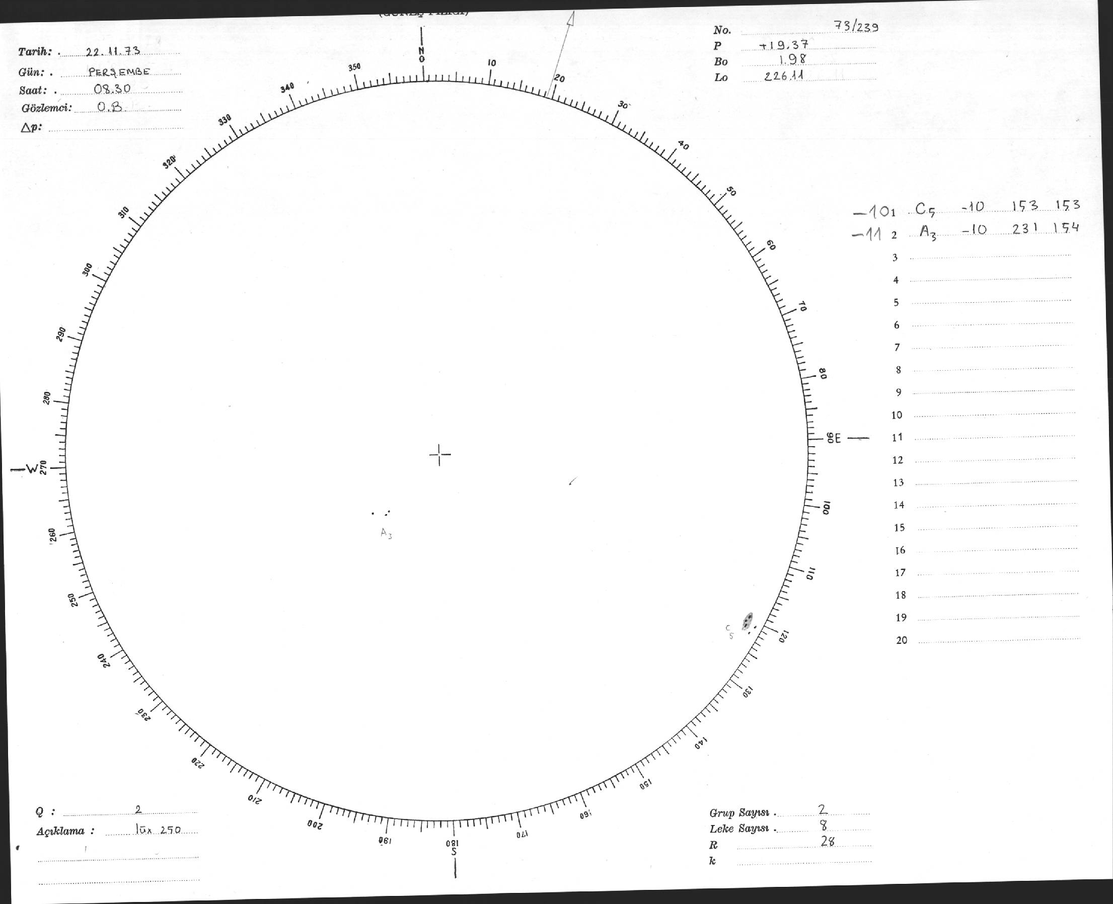 Güneş Lekesi Çizimi - 22.11.1973