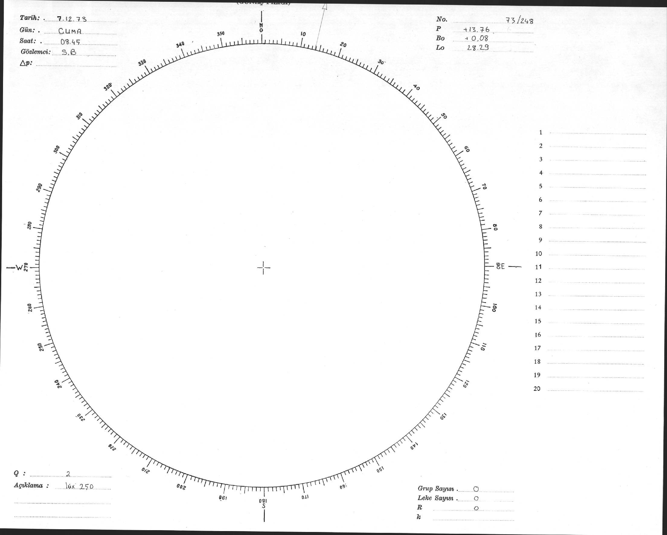 Güneş Lekesi Çizimi - 07.12.1973