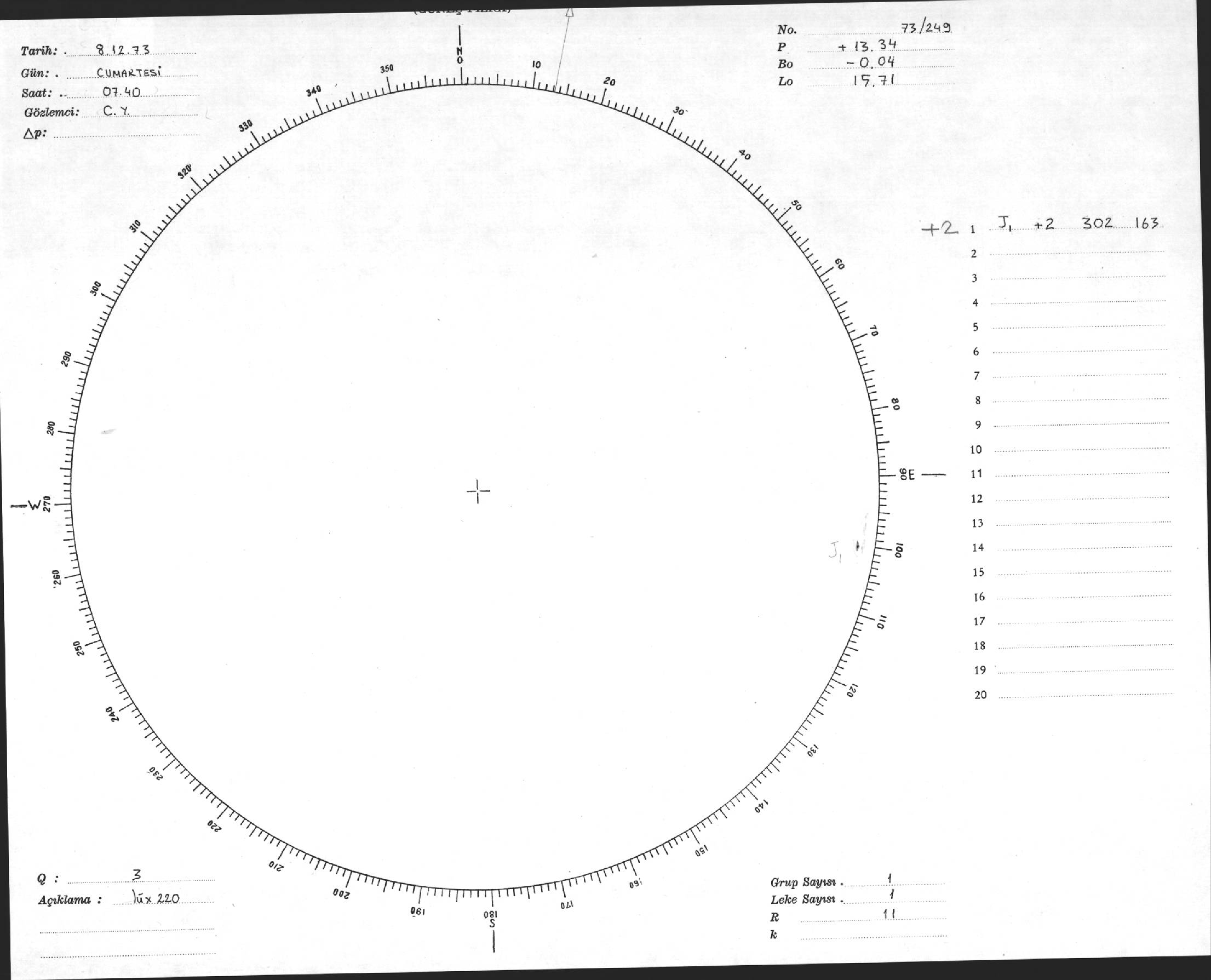 Güneş Lekesi Çizimi - 08.12.1973