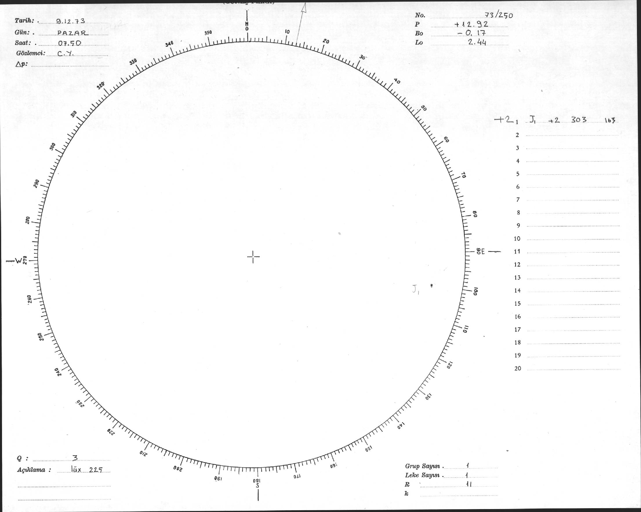 Güneş Lekesi Çizimi - 09.12.1973