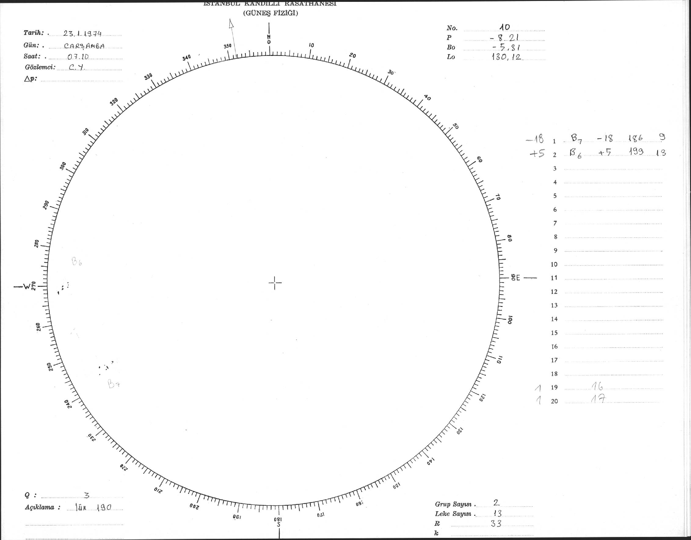 Güneş Lekesi Çizimi - 23.01.1974