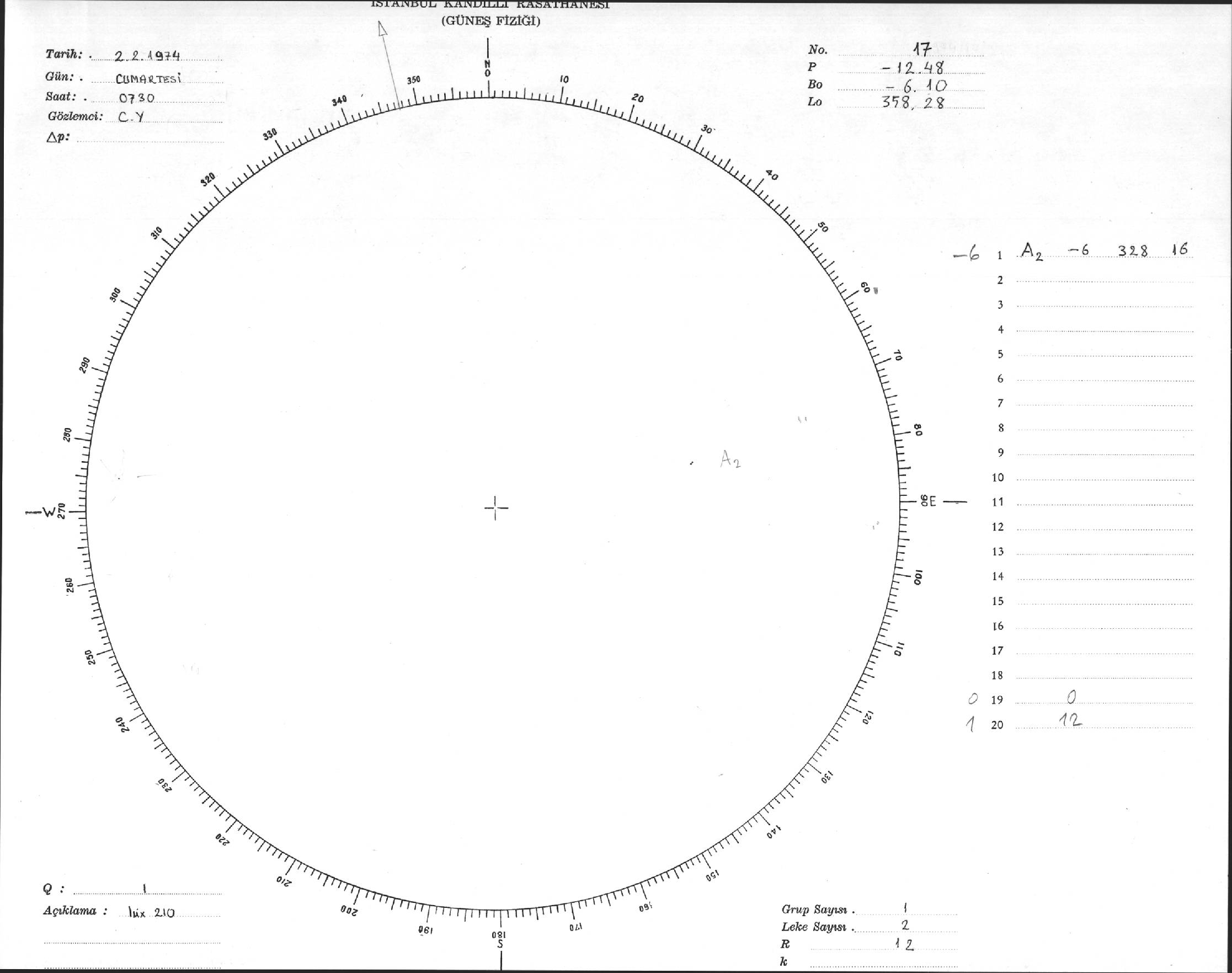 Güneş Lekesi Çizimi - 02.02.1974