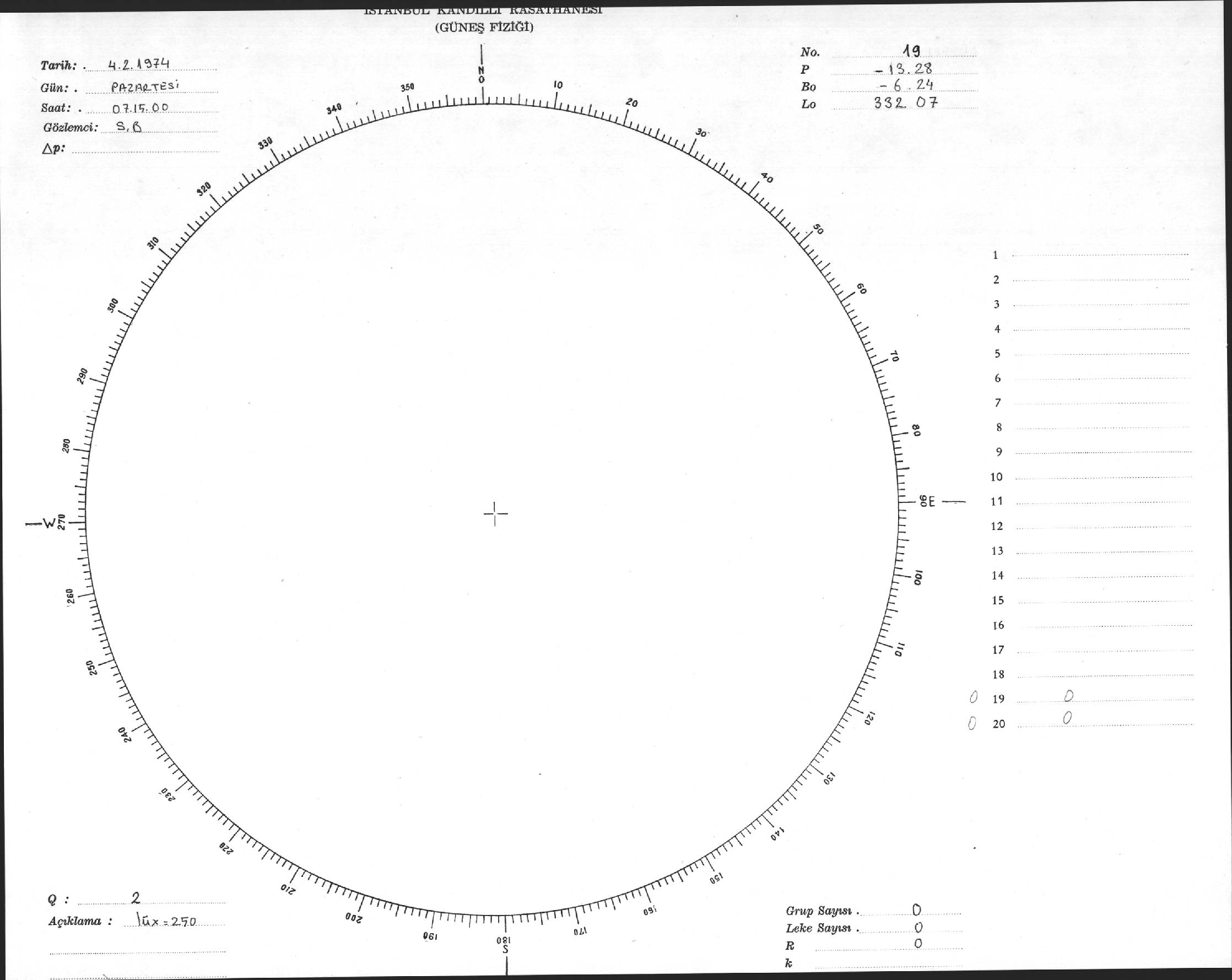 Güneş Lekesi Çizimi - 04.02.1974