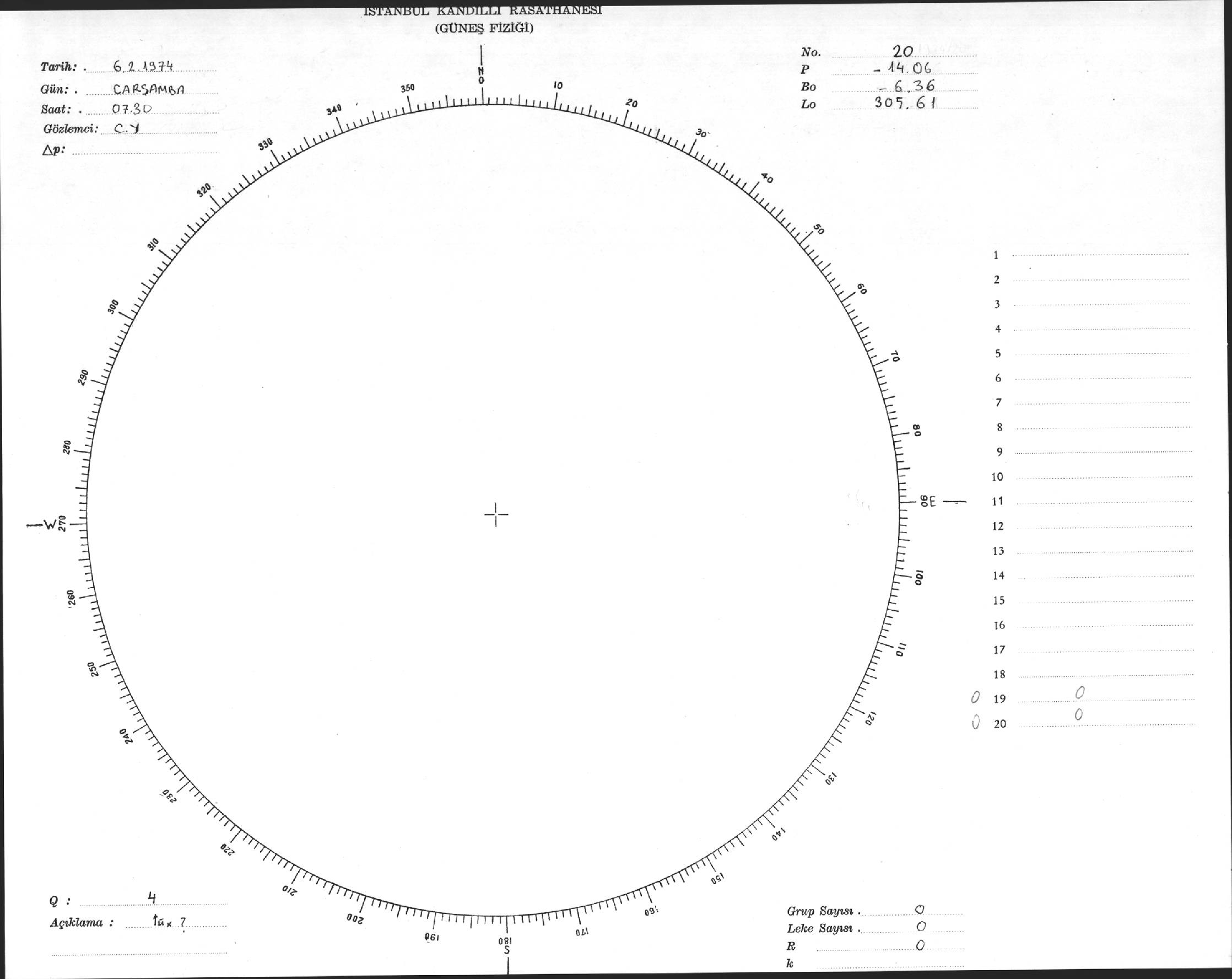 Güneş Lekesi Çizimi - 06.02.1974