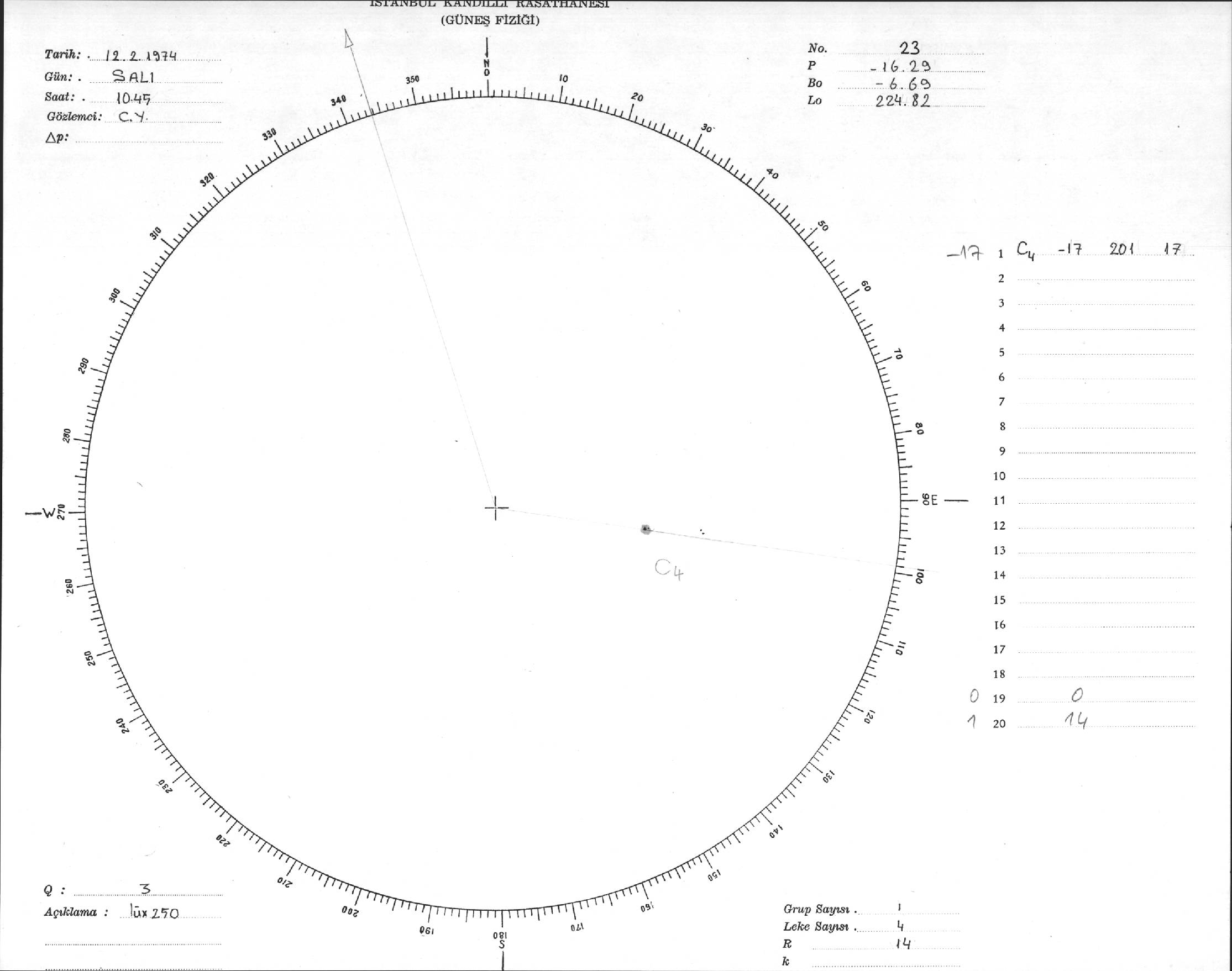 Güneş Lekesi Çizimi - 12.02.1974