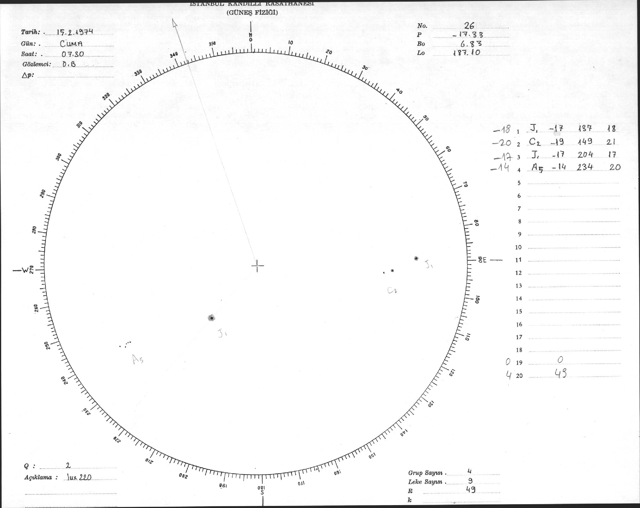 Güneş Lekesi Çizimi - 15.02.1974