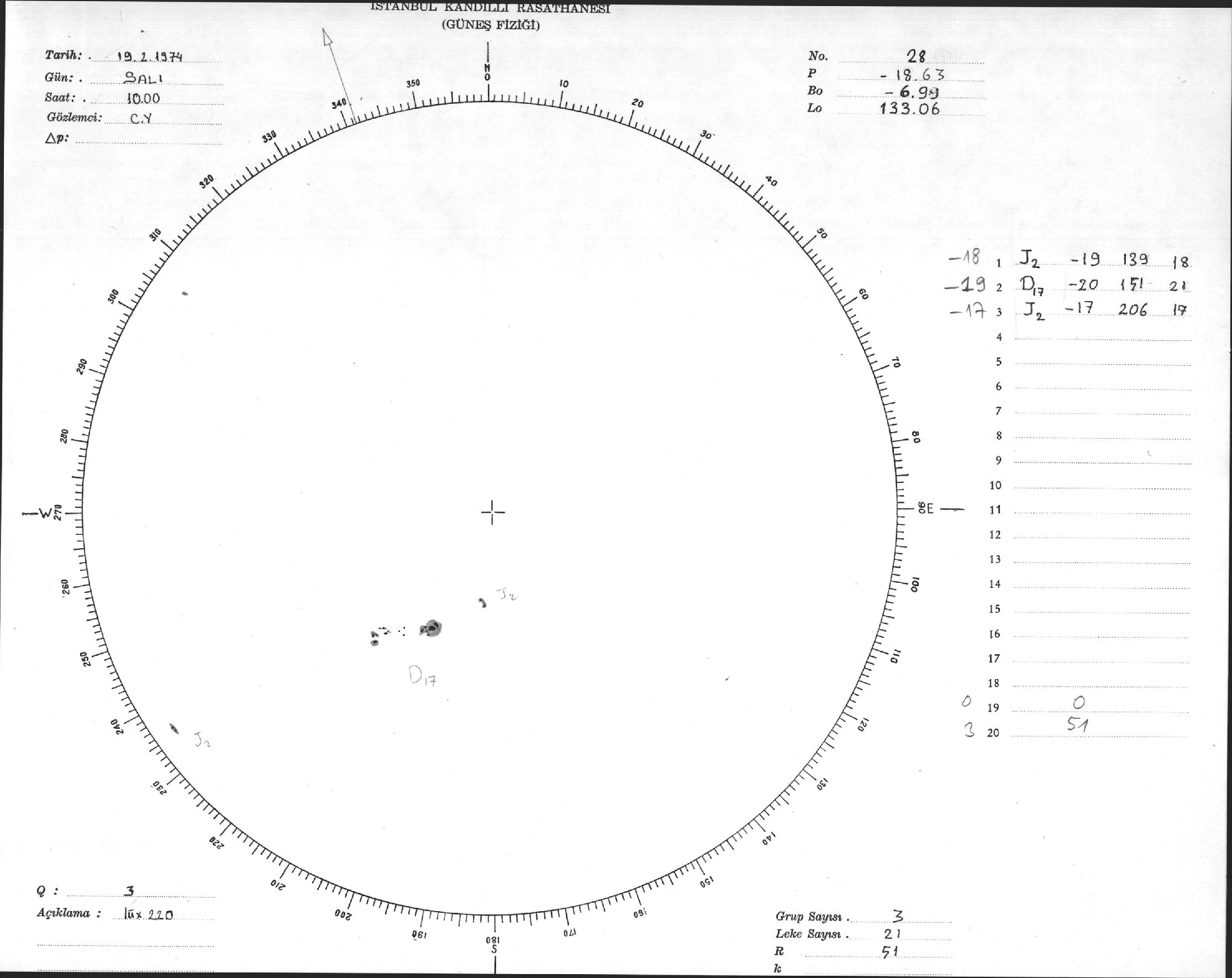 Güneş Lekesi Çizimi - 19.02.1974